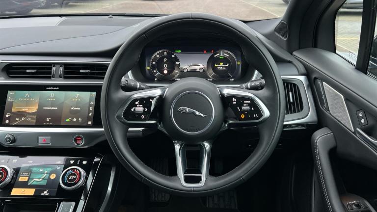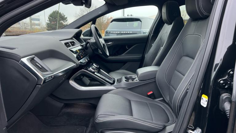 A stunning electric crossover sporting great driving dynamics and performance, a plush and high tech interior, and presented here in a brilliant specification. Our Jaguar I-Pace R-Dynamic SE Black is finished in Santorini Black matched with the Black Exterior Pack and 20-inch Style 6007 wheels in Diamond Turned Finish, over Ebony leather interior, and comes equipped with some brilliant features and optional extras, including, 12-way Heated front seats with Driver Memory function, Two-zone Climate Control, Meridian Sound System, Privacy Glass, Fixed Panoramic Roof, LED Headlights with Signature DRL, Keyless Entry, Adaptive Cruise Control, Lane Keep Assist, Blind Spot Assist, Front and Rear Parking Aids, Rear Camera, Apple CarPlay and Android Auto, DAB Radio, Wireless Device Charging, Secure Tracker Pro, and more. Call today for more information. VAT Q.