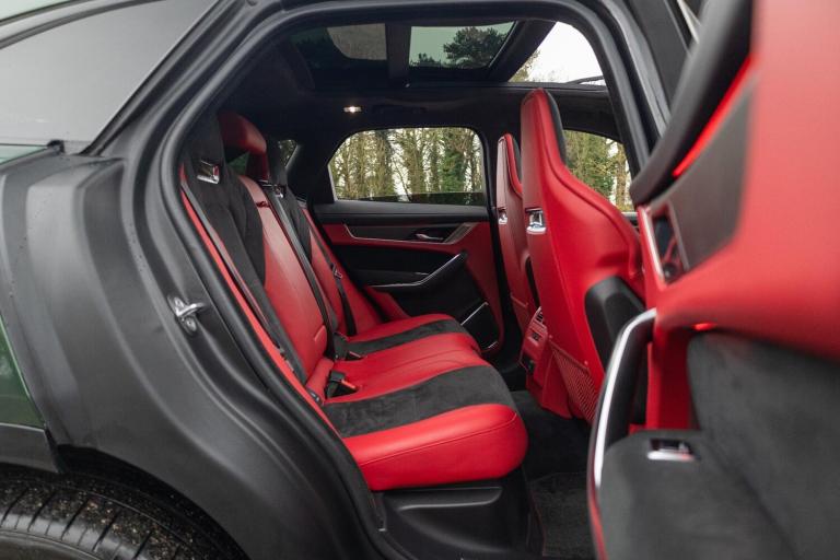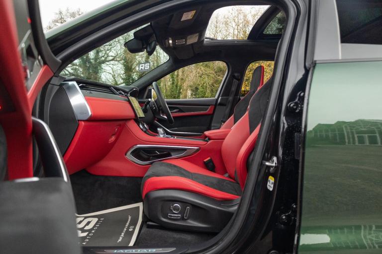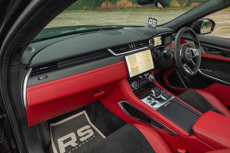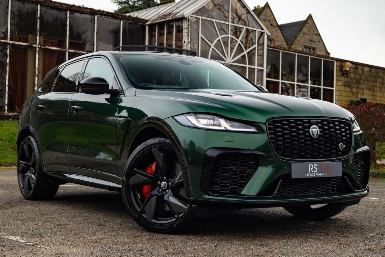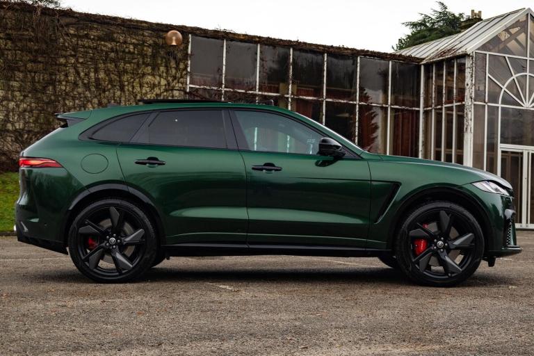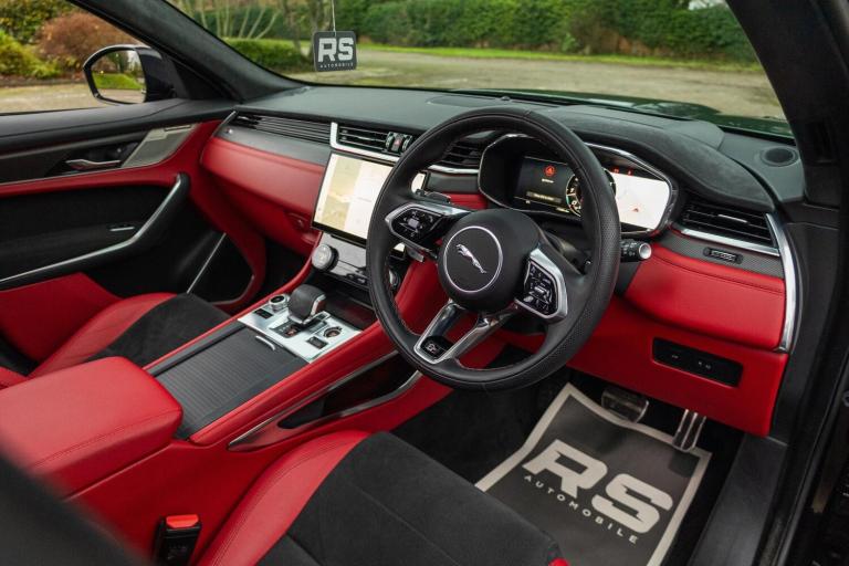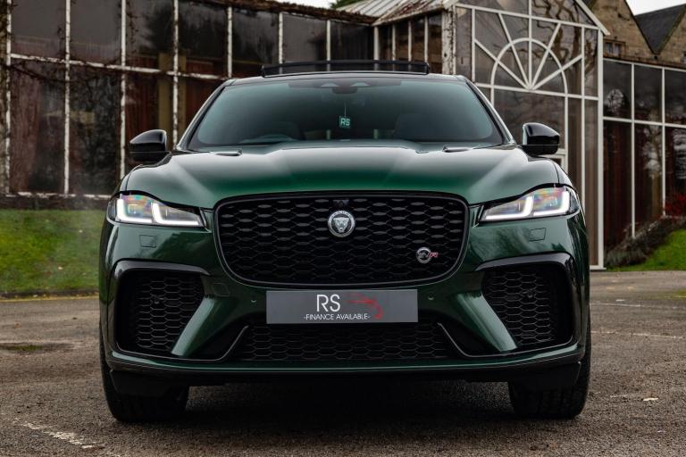 THIS 2024 JAGUAR F PACE P550 V8 SVR IS A REMARKABLE EXAMPLE WITH EXCEPTIONALLY LOW MILEAGE FOR ITS AGE, HAVING COVERED JUST 11,000 MILES. THIS PERFORMANCE SUV BOASTS A POWERFUL 5.0 LITRE PETROL ENGINE, DELIVERING EXHILARATING ACCELERATION FROM 0-60MPH IN A MERE 3.8 SECONDS. ITS FOUR WHEEL DRIVE SYSTEM ENSURES CONFIDENT HANDLING IN VARIOUS CONDITIONS, WHILE THE EURO 6 EMISSION CLASS REFLECTS ITS MODERN ENGINEERING. THE SVR TRIM ENHANCES ITS SPORTING CREDENTIALS, COMPLEMENTED BY A BLACK EXTERIOR PACK AND STRIKING 22 INCH FORGED ALLOY WHEELS, AVAILABLE IN BOTH GLOSS BLACK WITH SATIN TECHNICAL GREY INSETS AND SATIN TECHNICAL GREY WITH CONTRAST DIAMOND TURNED FINISH. FURTHER ENHANCING ITS APPEAL ARE THE ADVANCED PIXEL LED HEADLIGHTS WITH SIGNATURE DAYTIME RUNNING LIGHTS AND A SPACIOUS SLIDING PANORAMIC ROOF, OFFERING AN OPEN AND AIRY CABIN EXPERIENCE.THE GENEROUS BOOT SPACE PROVIDES AMPLE PRACTICALITY FOR EVERYDAY NEEDS AND LONGER JOURNEYS, WHILE THE IMPRESSIVE TOWING WEIGHT OF 2400 KG ADDS FURTHER VERSATILITY. THESE FEATURES, COMBINED WITH THE F PACE'S DYNAMIC CAPABILITIES AND LUXURIOUS SVR APPOINTMENTS, SET IT APART FROM OTHER VEHICLES IN ITS CLASS, OFFERING A COMPELLING BLEND OF PERFORMANCE, STYLE, AND UTILITY.