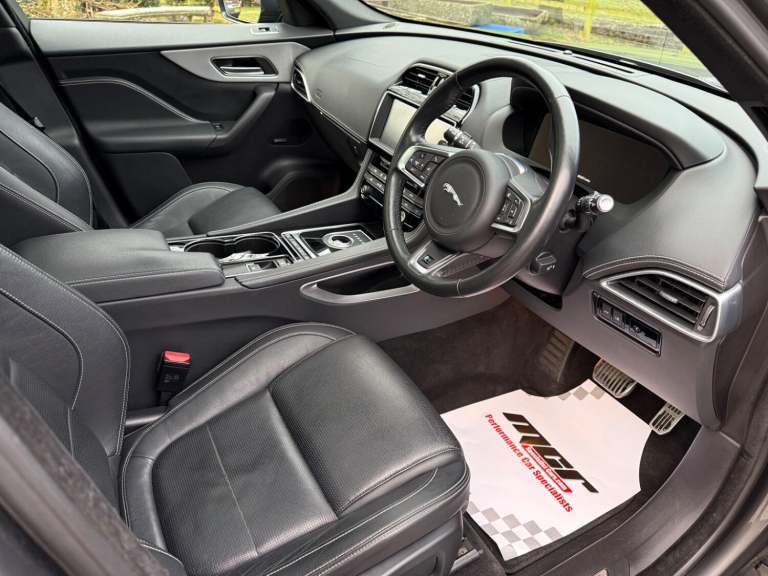 Stunning Corris Grey Jaguar F-Pace With Over £10k Worth Of Optional Extras And Just 2 Owners From New. Full Spec Includes Panoramic Glass Sunroof, Full Black Oxford Leather Interior, Touch Pro SSD Satellite Navigation, Dual Zone Digital Climate Control Air Conditioning With Comfort Front Air Con, DAB Radio With Meridian Hi Line Audio System, 20"" Venom Twin 5 Spoke Alloy Wheels, Heated Front & Rear Seats, Heated Steering Wheel, R-Sport Multi Function Steering Wheel, Electric Seat Adjustment, Electric Windows, Electric Heated Power Fold Mirrors, Rain Sensitive Wipers, Sports Seats, Quickclear Heated Front Screen, Rear Privacy Glass, Auto Bi-Xenon Headlamps With Headlamp Wash, Keyless Start, Power Tailgate, 8 Speed Auto Gearbox With Steering Wheel Mounted Paddle Shift, R-Sport Styling & Gloss Black Grill, Front & Rear Parking Sensors With Reverse Camera, Front Centre Console, Bluetooth, Music Streaming, Day Time Running Lights, Cruise Control, On Board Computer, Remote Central Locking, Multi Airbags. Complemented With A FULL SERVICE HISTORY Plus Just Had Full Service Carried Out By Our Workshop.