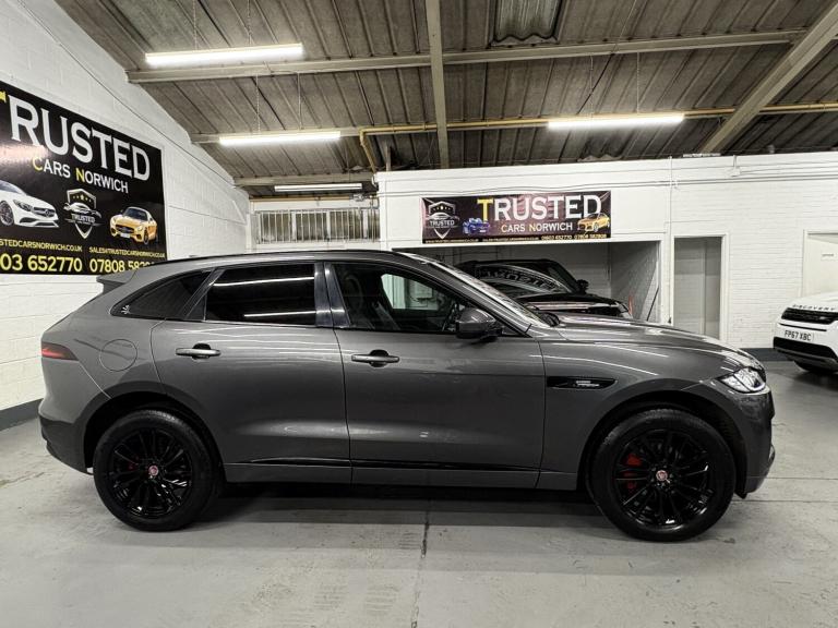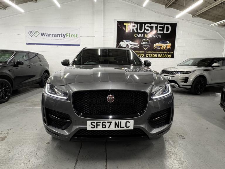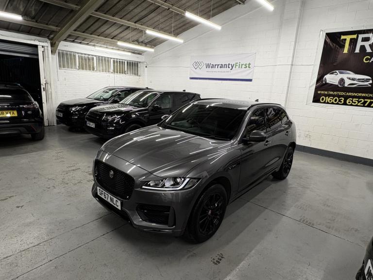 Jaguar F-PACE 2.0 D180 R-Sport SUV 5dr Diesel Automatic Grey AWD Ulez Compliant Euro 6 (ss) (180 ps) Full Service History Last Serviced At Current Mileage Mot Until 14 August 2026 HPI Clare 2 Keys 3 Months Part And Labour Warranty Extendable is Available In Excellent Condition Inside And Outside Ready To Go Features Included :: Navigation HDD Parking Sensors Reverse Camera Leather Trim Climate Control 19 Alloy wheels Heated Seats Electric Tailgate Electric Folding Mirrors Cruise Control Privacy Glass ,,, Etc Part Exchange Welcome.