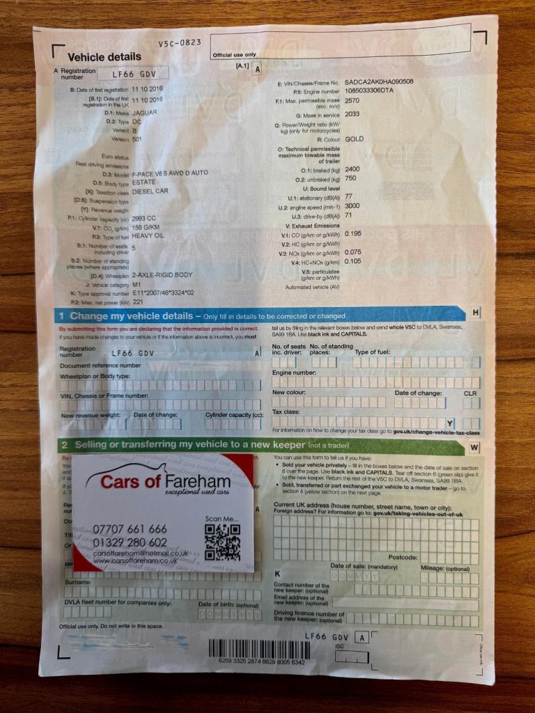 - Original number plateAdvisoryDifferent number plates are commonplace. Ensure the number plates on the car match the V5C documentation. Be sure of what number plate comes with the car you are buying.