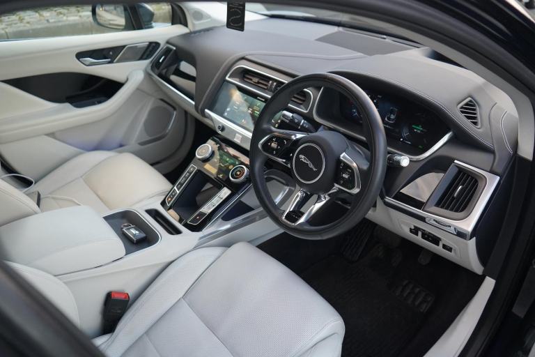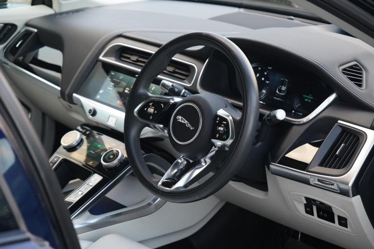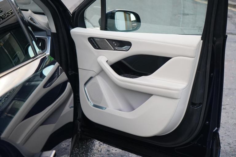 Stunning I-PACE HSE Finished In Portofino Blue With Light Oyster Leather. Fantastic Spec Inc: 22" Upgrade Alloys, Air Suspension, Heated Steering Wheel, Heated and Cooling Front Seats, Heated Rear Seats, Black Exterior Pack, Head Up Display, Adaptive Cruise Control, Meridian Surround Sound, Electric Front Seats With Memory, 360 Surround Camera, Ambient Interior Lighting, Keyless Entry, Lane Assist, Driver Assist Pack, Cold Climate Pack, Park Assist, Matrix LED Headlights. This Jaguar Comes With Full Service History.