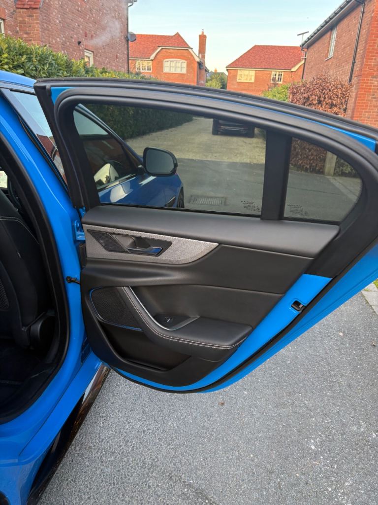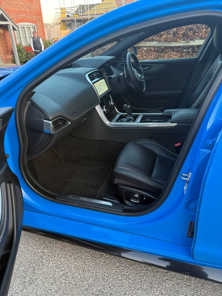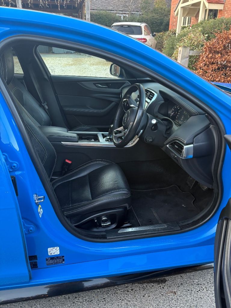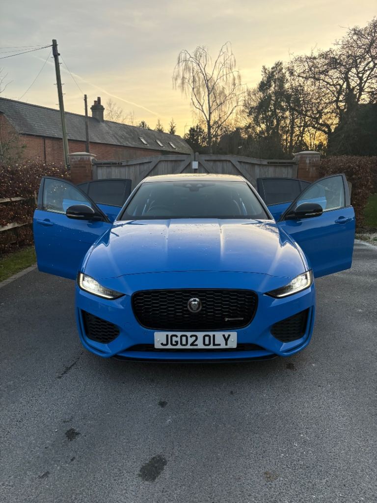 For sale is a 2020 Jaguar XE R-Dynamic S 250PS Auto, finished in Caesium Blue with an Ebony perforated DuoLeather interior. The car has covered 72,609 miles, with an MOT valid until the end of June. It comes with the distinctive private registration JG02 OLY. The vehicle is in excellent condition inside and out. Powered by a 2.0L 250PS petrol engine and 8-speed automatic transmission, it offers sporty rear-wheel drive. Features include 19” gloss black alloys, black exterior pack, heated front seats, heated steering wheel, dual-zone climate control, and heated windscreen. It is equipped with a 10” Touch Pro system, Navigation Pro, Apple CarPlay, Android Auto, DAB radio, and a rear camera. Safety features include lane keep assist, emergency braking, and pedestrian sensing. With a full service history, this well-maintained example is ready for its next owner.