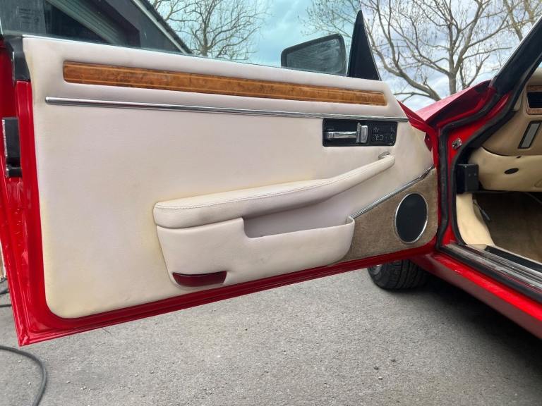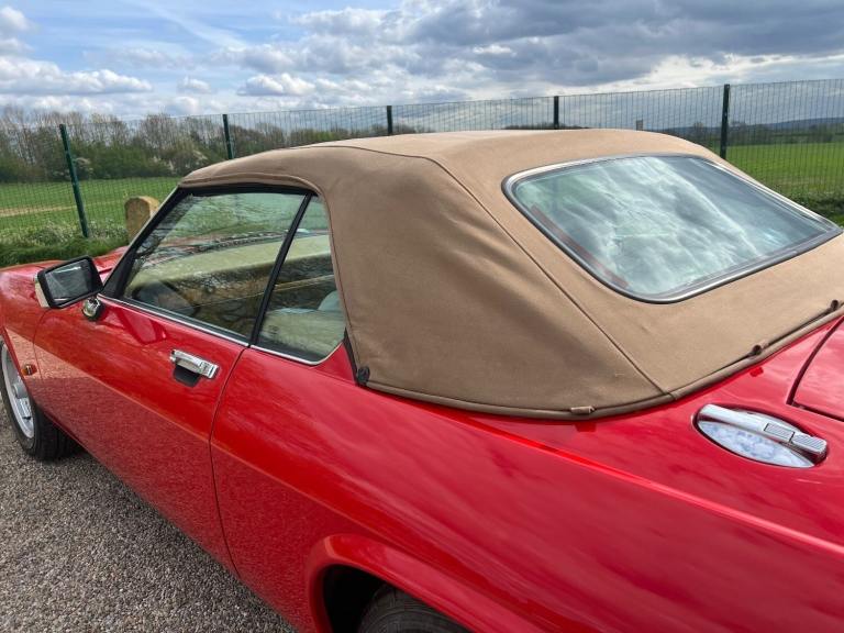 This is the Jaguar XJS 5.3 V12 RHD Convertible with an interesting colour combination in Red with a biscuit soft top roof , it has a very low mileage of 45000 miles.