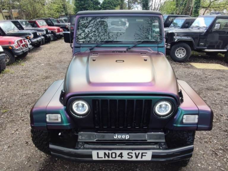 Jeep Wrangler TJ 2004 84k miles, softtop with chameleon wrap (paint colour black). Central locking with remote and alarm. History folder from Japan and UK service history. Halo LED Headlights, front and rear aftermarket bumpers de-chromed, towbar. For more information call Mark:07948774877Delivery Service Available - See our Delivery Service page for more information.