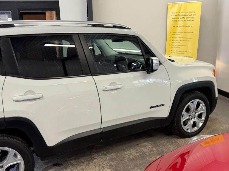 2015 (15) Jeep Renegade 1.4 Multiair Limited 5drWhite 5 Doors 1.4 Petrol ManualRegistration: WR15 LJXThis Jeep Renegade comes with a great service history, including nine service records, the most recent completed on 2nd July 2025 at 110,358 miles. It will also benefit from a fresh MOT as part of our preparation process. The vehicle is supplied with two keys.Finished in white with black leather upholstery, this Limited model is well equipped with a DAB radio, electric windows, electric mirrors, remote central locking, dual zone climate control, heated seats and a heated steering wheel.A three-month comprehensive warranty is included, with the option to extend for up to two years. Part exchange is welcome at any value, and our Buying Department can provide prompt valuations. Nationwide delivery is available at cost, and you can reserve this vehicle today with a 250 fully refundable deposit.We have over 150 vehicles in stock across our two sites, giving you plenty of choice. Established in 2021, we are proud of our excellent reviews and commitment to customer service. All retail vehicles are fully health-checked and prepared to the highest standard.As an AA Approved Dealer with Trading Standards endorsement, you can buy with confidence. Every car comes with 12 months of free AA roadside breakdown and recovery, regardless of age, value or mileage. We are proudly recognised as an approved dealer on the Trading Standards website, and youll see the AA and Trading Standards logos across all our branding.We are regulated and authorised by the Financial Conduct Authority under FRN: 1014981.