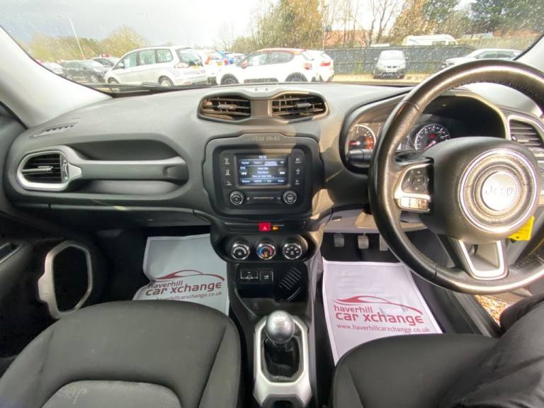 £35 A YEAR ROAD TAX+ONLY 59,791 MILES+5 INCH TOUCHSCREEN SATELLITE NAVIGATION SYSTEM+UCONNECT DAB RADIO+UCONNECT BLUETOOTH+AIR-CONDITIONING+CRUISE CONTROL+DAYTIME RUNNING LIGHTS+METALLIC GLAICER SILVER PAINT+17 INCH ALLOY WHEELS. At Haverhill Car Xchange we would like to offer you our Jeep Renegade MultiJetII Longitude SUV which has been finished in a metallic Glacier Silver paint, Black Cloth upholstery with Jeep Logo, Satin Silver Bezels Accents. Specification Includes a 5 Inch Touchscreen which features Satellite Navigation, Uconnect DAB Radio, Uconnect Bluetooth, USB Connectivity, Aux-In, 12 Volt Power Sockets in Front and Rear, Air-Conditioning, Cruise Control, EcoDrive-Drive Monitoring System, Electric Windows, Body Coloured Bumpers/Door Handles and Door Mirrors with Integrated Side Indicators, Black Roof Rails, Daytime Running Lights, Fog Lights, Leather Wrapped Multifunction Steering Wheel, Electric Parking Break, 17 Inch Alloy Wheels, Power Steering, Hill Start Assist, ABS Breaking System, Airbags, Alarm, Immobiliser, Remote Central Locking and ISOFIX Anchorage Points for Child Seats. *** WE ARE OPEN 7 DAYS A WEEK *** ** UPTO 100 CARS IN STOCK **.Glacier, Touchscreen - 5in, Satellite Navigation System, UConnect Bluetooth, Air Conditioning, Spare Wheel - Full Size, 12V Power Socket, 12V Power Socket - Luggage Compartment, 17in Alloy Wheels, ABS - Anti-Lock Brakes, Air Conditioning, Airbags - Drivers Advanced Multi Stage, Airbags - Front Curtain, Airbags - Passenger Advanced Multi Stage, Airbags - Rear Curtain, Airbags - Seat-Mounted Front Side Thorax, Alarm - Premium, Ambient LED Interior Lighting, Aux-in, Body Coloured Door Handles, Cruise Control, Daytime Running Lights, Door Mirrors - Body Coloured, Door Mirrors - Electric and Heated, ERM - Electronic Roll Mitigation, ESC - Electronic Stability Control, EcoDrive - Drive Monitoring System, Electric Park Brake, Electric Windows, Front Fog Lights, Hill Start Assist, ISOFIX Child Seat Restraint System, Instrument Cluster - 3.5in TFT Colour Display, Leather Wrapped Steering Wheel, Passenger Airbags Deactivation, Pollen Filter, Power Steering, Remote Central Locking, Roof Rails - Black, Satellite Navigation System, Seats - Drivers Electric Lumbar Adjustment, Speakers x6, Speed Limiter, Steering Column - Tilt and Telescopic, Steering Wheel - Mounted Audio Controls, Touchscreen - 5in, Traction Control, Trailer Sway Damping - Control, Trip Computer, Tyre Pressure Monitoring - Warning Display, UConnect Bluetooth, USB Connectivity, Uconnect DAB Radio, Cloth - Black with Jeep Logo with Satin Silver Bezel Accents, Glacier