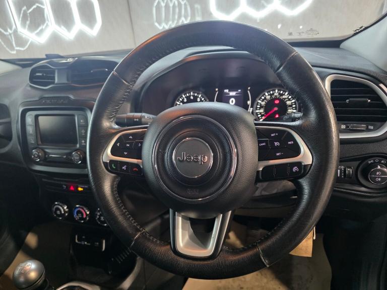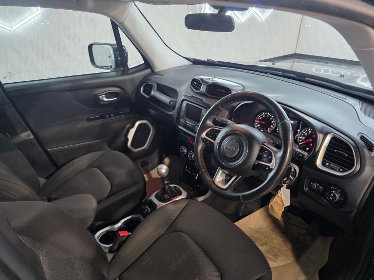 Comes with 2 keys and a partial service history, 17” aluminium alloy wheels, carbon black exterior finish, body-coloured door handles and heated electric door mirrors, black roof rails, LED daytime running lights, front fog lights, rear parking sensors and remote central locking. Interior & Comfort: Air conditioning, ambient LED interior lighting, black cloth upholstery with Jeep logo and satin silver accents, leather-wrapped steering wheel with audio controls, tilt & telescopic steering column, sliding front armrest with storage, driver’s 6-way seat with electric lumbar support, passenger 4-way seat adjustment, rear power windows and height-adjustable rear head restraints. Technology, Safety & Connectivity: 5” touchscreen infotainment system with Uconnect DAB radio, satellite navigation, Bluetooth, USB & AUX-in, 6-speaker audio system, cruise control with speed limiter, ABS, ESC with roll mitigation and trailer sway control, hill start assist, electric park brake, tyre pressure monitoring, ISOFIX child seat mounts, multiple airbags and premium alarm system.