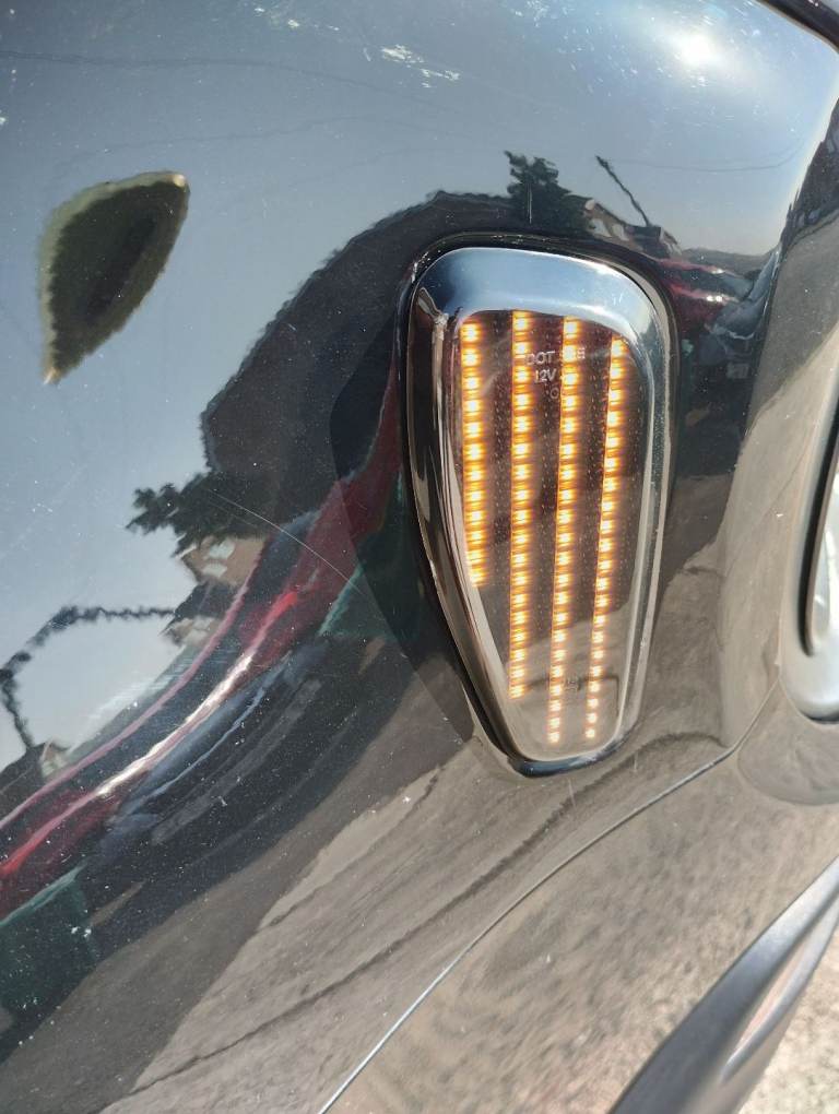Indicator lights on door mirrors upgraded to black covers with progressive orange lights.