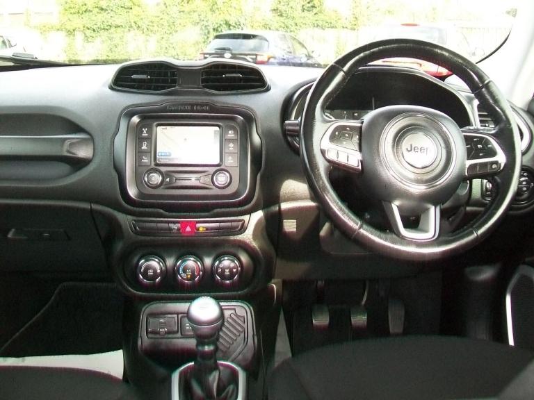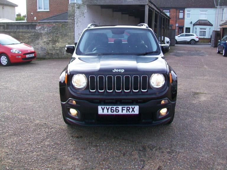 16 (66) JEEP RENEGADE 1.4 MULTIAIR LONGITUDE 5DR, Black/met, 6 speed manual, Panoramic electric roof, Reversing sensors, Satnav, Center arm rest, 3rd brake light, Cruise controL, Auto lights and wipers, Day running lights, Power fold mirrors, Roof bars, Tinted glass, Trip computer, Multifunction steering wheel, Traction control, Auxiliary input socket, Mulitmedia player, Cup holders, USB input, Body coloured bumpers, Front fog lights, Aircon, Fitted carpet mats, Front interior 12V power outlet, Steering wheel rake adjustment, Electric windows, Electric door mirrors, Drivers airbag, Passenger airbag, Isofix child seat anchor points, Folding rear seats, Keyless entry/go, Cloth seat upholstery, Alloy wheels, Only 48,000 miles with full service history including cambelt kit changed @ 43,000 miles, Superb example.