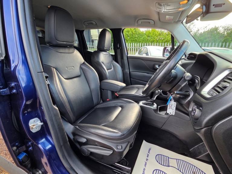 This 2016 Jeep Renegade T Limited offers exceptional provenance with its full service history and a clear vehicle history check, complemented by a low mileage of just 55,997 miles for its age. This Four Wheel Drive model is powered by an efficient 1.4L Petrol engine, meeting Euro 6 emissions standards. Inside, youll find the desirable Infotainment Pack, a heated steering wheel for those colder mornings, and convenient front and rear parking sensors to assist with manoeuvring. The UConnect Bluetooth system ensures seamless connectivity on the go. The Jeep Renegade T Limited stands out with its impressive performance, achieving 0-60mph in a brisk 8.5 seconds, indicating a more responsive driving experience compared to many similar vehicles. Furthermore, its placement in a low insurance group highlights its affordability for everyday use. This combination of strong performance, practical features, and cost effective ownership makes this Renegade a compelling choice..BLUETOOTH + AUDIO + SATELLITE NAVIGATION, HEATED FRONT SEAT+HEATED STEERING WHEEL, FRONT + REAR PARKING SENSORS, FULL SERVICE HISTORY 9 SERVICES + 2 KEYS, CRUISE CONTROL + AUTO LIGHTS, 12V Power Socket, 18in Alloy Wheels - Silver Painted, ABS - Anti-Lock Brakes, Adaptive Rear Brake Lights, Air Conditioning - Dual Zone with Automatic Temperature Control, Airbags - Drivers Advanced Multi Stage, Airbags - Front Curtain, Airbags - Passenger Advanced Multi Stage, Airbags - Rear Curtain, Airbags - Seat-Mounted Front Side Thorax, Alarm - Premium, Ambient LED Interior Lighting, Armrest - Rear, Autonomous Emergency Braking, Aux-in, Body Coloured Door Handles, Cruise Control, Daytime Running Lights, Door Mirrors - Electric and Heated, Door Mirrors - Silver, ERM - Electronic Roll Mitigation, ESC - Electronic Stability Control, EcoDrive - Drive Monitoring System, Electric Park Brake, Electric Windows, Exhaust Tailpipes - Chrome, Floor Mats - Front, Forward Collision Warning Plus, Front Fog Lights, Grille - Front in Silver, Heated Front Seats, Heated Steering Wheel, Hill Start Assist, ISOFIX Child Seat Restraint System, Instrument Cluster - 7in TFT Colour Display, Lane Departure Warning Plus, Leather Wrapped Steering Wheel, Parking Sensors - Front, Parking Sensors - Rear, Passenger Airbags Deactivation, Pollen Filter, Power Steering, Privacy Glass, Remote Central Locking, Roof Rails - Silver, Satellite Navigation System, Seats - 40-20-40 Split Folding Rear, Seats - Drivers Electric Lumbar Adjustment, Speakers x6, Speed Limiter, Steering Column - Tilt and Telescopic, Steering Wheel - Mounted Audio Controls, Touchscreen - 6.5in, Traction Control, Trailer Sway Damping - Control, Trunk Pass-thru, Tyre Pressure Monitoring - Warning Display, UConnect Bluetooth, USB Connectivity, Uconnect DAB Radio, Uconnect Live, Infotainment Pack, Jetset Blue, Leather - Black Leather with Satin Silver Bezel Accents and Stitching