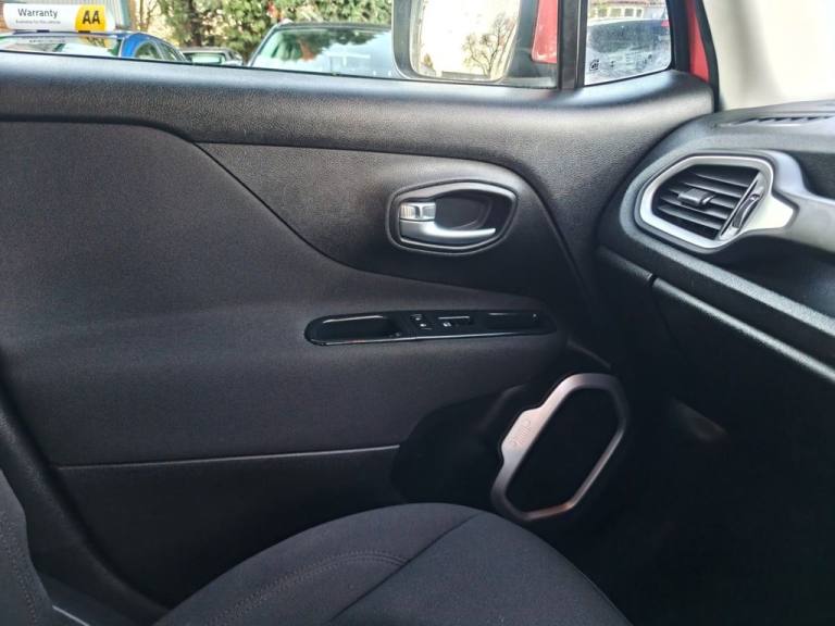 * FREE 12 MONTHS WARRANTY AND FREE BREAKDOWN * Awesome 2 owner example of the Stylish Jeep Renegade New MOT and Freshly serviced on arrival * Sat Nav * Cruise Control * Parking Sensors * Air Con * 2 Keys * DAB * Steering Wheel Controls * Low road tax * HPI Clear Extended warranty available, ask about extending to 2 years or 3 years for just £200 per year! Warranty provided by AA, Evolution or WSG warranties and fully cover any vehicle. *Finance available, PX always welcome and we also offer a click and collect service. Nationwide delivery available, £1.75 a mile driven £2.50 transported* To apply for finance, either get in touch and we can send you a soft search link to apply within minutes or you can complete an application directly from the advert link on our website [Website URL removed] We are a credit broker not a lender Warranty provided by AA, Evolution or WSG warranties and fully cover any vehicle. Finance available, PX always welcome and we also offer a click and collect service. Nationwide delivery available, £1.75 a mile driven £2.50 transported To apply for finance, either get in touch and we can send you a soft search link to apply within minutes or you can complete an application directly from the advert link on our website [Website URL removed] *PLEASE NOTE: Our cars are always in high demand. Vehicles remain for sale until either a deposit has been placed or they have been paid in full, until then the car will remain on the market and can sell at any time. Promising to purchase at a future date or implying that you intend to purchase does not qualify as a reservation. * FREE 12 MONTHS WARRANTY AND FREE BREAKDOWN * Extended warranty available, ask about extending to 2 years or 3 years from just £200 per year! Warranty provided by AA or Evolution warranties and fully cover any vehicle. *Finance available, PX always welcome and we also offer a click and collect service. Nationwide delivery available, £1.75 a mile driven £2.50 transported* To apply for finance, either get in touch and we can send you a soft search link to apply within minutes or you can complete an application directly from the advert link on our website [Website URL removed] We are a credit broker not a lender .12V Power Socket, 17in Alloy Wheels - Aluminium, ABS - Anti-Lock Brakes, Air Conditioning, Airbags - Drivers Advanced Multi Stage, Airbags - Front Curtain, Airbags - Passenger Advanced Multi Stage, Airbags - Rear Curtain, Airbags - Seat-Mounted Front Side Thorax, Alarm - Premium, Ambient LED Interior Lighting, Aux-in, Body Coloured Door Handles, Cruise Control, Daytime Running Lights, Door Mirrors - Body Coloured, Door Mirrors - Electric and Heated, ERM - Electronic Roll Mitigation, ESC - Electronic Stability Control, EcoDrive - Drive Monitoring System, Electric Park Brake, Electric Power Steering, Front Fog Lights, Gear Knob - Satin Chrome, Head Restraints - Height Adjustable 3rd Rear, Hill Start Assist, ISOFIX Child Seat Restraint System, Instrument Cluster - 3.5in Monochrome TFT Display, Leather Wrapped Steering Wheel, Parking Sensors - Rear, Passenger Airbags Deactivation, Pollen Filter, Power Windows - Driver and Passenger Express Up and Down, Power Windows - Rear, Remote Central Locking, Roof Rails - Black, Satellite Navigation System, Seats - Drivers 6-Way Adjustment, Seats - Drivers Electric Lumbar Adjustment, Seats - Passenger 4-Way Adjustment, Sliding Front Armrest with Storage, Speakers x6, Speed Limiter, Steering Column - Tilt and Telescopic, Steering Wheel - Mounted Audio Controls, Touchscreen - 5in, Traction Control, Trailer Sway Damping - Control, Tyre Pressure Monitoring - Warning Display, UConnect Bluetooth, USB Connectivity, Uconnect DAB Radio, Uconnect Live, Cloth - Black with Jeep Logo with Satin Silver Bezel Accents, Omaha Orange