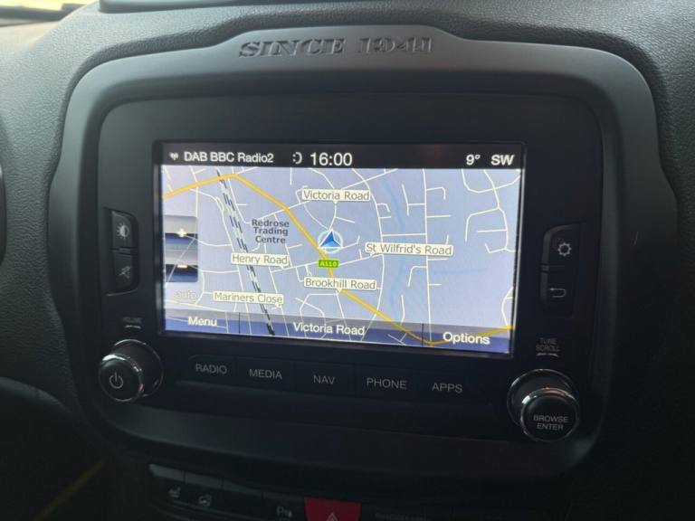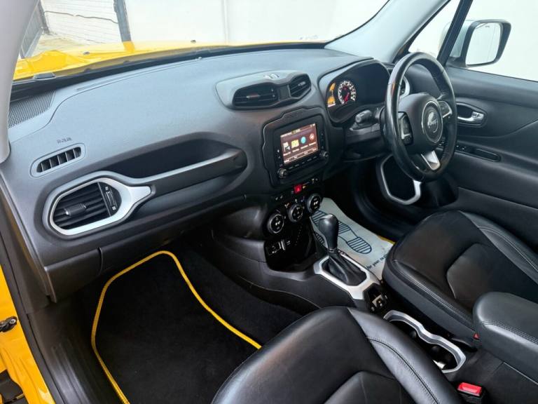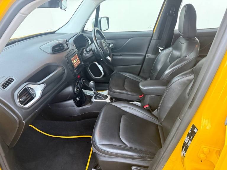 VELOCES ARE VERY PLEASED TO BE ABLE TO OFFER FOR SALE THIS AUTOMATIC LIMITED EDITION JEEP RENEGADE. ... A MUCH LOVED EXAMPLE FINISHED IN SOLAR YELLO WITH FULL BLACK LEATHER INTERIOR ... 8.8" TOUCH SCREEN SATELLITE NAVIGATION WITH REVERSE SENSORS ... CRUISE CONTROL, TRACTION CONTROL ... DUAL DIGITAL CLIMATE CONTROL ... LONGITUDINAL ROOF BARS ... MULTI-FUNCTION STEERING WHEEL ... ELECTRIC SEAT LUMBER ... ONBOARD COMPUTER ... GREAT SOUNDING STEREO ... ALARM & IMMOBILISER ... WINTER PACK WITH HEATED SEATS & HEATED STEERING WHEEL ... LANE DEPARTURE WARNING SYSTEM ... BLUE TOOTH PHONE & MUSIC ...PRIVATLEY OWNED FROM NEW WITH A FULL SERVICE HISTORY + WE HAVE JUST CARRIED OUT A FULL CAMBELT SERVICE..140 BHP + 45 MPG + LOW ROAD TAX ... STAND OUT FROM THE CROWD IN THIS STUNNING JEEP ...FREE COMPREHENSIVE WARRANTY & 12 MONTHS AA BREAKDOWN COVER.. ESTABLISHED FOR OVER 30 YEARS ..ALL OUR CARS ARE PREPARED TO THE HIGHEST OF STANDARDS IN OUR FULLY EQUIPPED WORKSHOP..BUY WITH CONFIDENCE FROM VELOCES..WE CAN ARRANGE UK WIDE DELIVERY OR CLICK & COLLECT FOR SPEED & CONVENIENCE..RESERVE THIS CAR NOW FOR JUST £199...RARE AUTOMATIC, FULL BLACK LEATHER INTERIOR, SATELLITE NAVIGATION, HEATED SEATS & STEERING WHEEL, NEW CAMBELT + SERVICE, Jetset Blue with Black Roof, Function Pack 2, 18in Alloy Wheels - Aluminium Two Tone, Dark Tinted Privacy Glass, 12V Auxiliary Power Outlet - Centre Console and Cargo Area, 18in Alloy Wheels - Aluminium Silver Painted, 6-Way Manual Driver Seat - 4-Way Manual Passenger Seat, ABS - Anti-Lock Brakes, Adaptive Rear Brake Lights, Alarm - Premium, Ambient LED Interior Lighting, Body Colour Door Mirror and Handles, Body Coloured Door Handles, Cargo Tie Down Loops, Cruise Control, DAB - Digital Audio Broadcasting, Deadlocks, Dual Note Electric Horns, Dual Zone Climate Control, ERM - Electronic Roll Mitigation, EcoDrive - Drive Monitoring System, Electric Park Brake, Electric Power Steering, Electronic Stability Control - ESC - and Hill Start Assist, Exhaust Tailpipes - Chrome, Fix and Go Puncture Repair Kit, Floor Mats, Forward Collision Warning Plus with Mitigation, Front & Rear Parking Sensors, Front - Next Generation - Front Side and Side Curtain -Front and Rear -Airbags, Front Fog Lights, Front Seat Belt - Adjustable, Head Restraints - Height Adjustable 3rd Rear, Heated Front Seats, ISOFIX Child Seat Restraint System, LaneSense - Lane Departure Warning Plus, Leather Wrapped Steering Wheel, Lower Bodyside Cladding - Black, Panic Brake Assist, Passenger Airbags Deactivation, Power Windows - Driver and Passenger Express Up and Down, Power Windows - Rear, Premium Instrument Cluster with 7in TFT Colour Display, Radio VP4 Nav - Uconnect 6.5in Touchscreen with Bluetooth Live Services & Satellite Navigation, Remote Control Central Door Locking, Seatback Pocket, Seats - Front Passenger Forward-Fold Flat Seat, Side Roof Rails and Door Mirrors - Silver, Sliding Front Armrest with Storage, Speakers x6, Speed Limiter, Steering Wheel - Mounted Audio Controls, Steering Wheel Adjustment - Tilt-Telescopic, Traction Control, Trailer Sway Damping - Control, Tyre Pressure Monitoring - Warning Display, Leather - Black Leather with Satin Silver Bezel Accents and Stitching, Solar Yellow