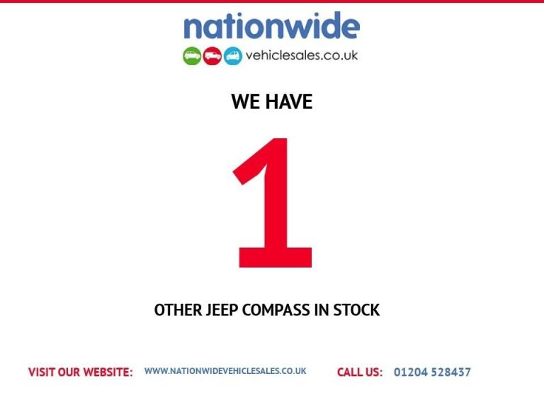 Nationwide Vehicle Sales are an established family run dealership based in Bolton. We have over 100 cars currently in stock and offer fantastic finance rates on both HP and PCP finance, we have extended warranties available for up to 3 years on all of our vehicles giving you complete peace of mind. Give us a call today to reserve your new car with a refundable £100 deposit..12V Auxiliary Power Outlet - Front, 18in Alloy Wheels - Silver and Tech Grey, 230v Auxiliary Power Outlet, 60-40 Rear Seat with Trunk Pass-Thru, Active Speed Limiting Device, Advanced Brake Assist, Airbags - Advanced Multistage Front - Front Side and Side Curtain Front and Rear, Alarm - Premium, All Speed Traction Control, All-Weather Floor Mats with Jeep Logo, Ambient LED Interior Lighting, Anti Lock 4 Wheels Disc Brake - ABS, Apple CarPlay and Android Auto Integration, Auto Dimming Rear View Mirror, Autonomous Emergency Braking, Auxiliary 12v Power Outlet In Cargo Area, Beats Audio 9-Speaker System, Black Roof Rails with Chrome Inserts, Black and Chrome Front Grille, Blind Spot Monitoring and Cross-Path Detection, Body Colour Exterior Mirrors, Body Coloured Door Handles, Child Seat Anchor System, Chrome Exterior Accents, Chrome Window Surrounds, Cruise Control, Deep Tint Sunscreen Glass, Door Mirrors - Power Folding, Dual Zone Climate Control, ERM - Electronic Roll Mitigation, ESC - Electronic Stability Control, Electric Power Steering, Electronic Park Brake, Exhaust Tailpipes - Chrome, Exterior Door Mirrors with Courtesy Lamps, Fog Lamp Bezels - Chrome, Forward Collision Warning Plus, Front Fog Lights with Cornering Lights, Front Height-Adjust Seatbelts, Front Passenger Forward Fold-Flat Seat and Storage Under Passenger Seat, Halogen Projector Headlamps, Heated Front Seats, Heated Steering Wheel, Hill Start Assist, Immobiliser, Instrument Cluster - 7in TFT Colour Display, Keyless Enter-N-Go, LED Signature Lighting, LED Tail Lamps, Lane Departure Warning Plus, Leather Wrapped Steering Wheel, Parallel and Perpendicular Park Assist and Camera, ParkSense Front and Rear Park Assist System, ParkView Rear Back Up Camera, Power 8-Way Driver - Passenger Seats with Lumbar Adjust, Power Windows - Driver and Passenger Express Up and Down, Pretensioning Seatbelts, Rain Sensitive Windscreen Wipers, Rear Air-Conditioning and Heater Vents, Rear Axle Disconnect, Rear Door Child Protection Locks, Selec-Terrain System, Shift Indicator Warning Lamp, Steering Wheel - Mounted Audio Controls, Trailer Sway Damping - Control, Tyre Service Kit, Uconnect 8.4in DAB Radio with Touchscreen USB AUX Satellite Navigation and Bluetooth, Uconnect Live, Windshield Wiper De-Icer, Brilliant Black, Leather - Black with Tan Accent Stitching, Premium Pack, Ventilated Front Seats