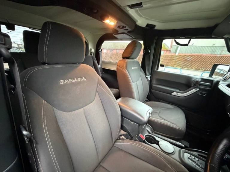 If you are Looking for a Luxurious, Comfortable, Economical SUV, this Jeep Wrangler isnt for you. This Hard Top Adventure Vehicle isnt for the Faint Hearted, it is for the Go-Getters, the Rebels, and Those who Wish to Take on Lifes Adventures by the Proverbial B*lls and Look Cool in Doing so. The Wrangler Sahara goes from a Two-Door, Hard Topped 4x4 to a No Door, No Roof, Beach Buggy in the Shake of a Stick. it is as Unconventional as it is Versatile. The Exterior, Presented in Granite Crystal Offers, 18" Alloy Wheels, Rear Privacy Glass and Side Steps. To the Interior, we find Seating for 4, Cruise Control, Air Conditioning, Radio, Electric Windows and Electric Wing Mirrors. This 1 Former Keeper Vehicle also Benefits from an MOT Until October 2026, 3 Keys and a Detailed Service History. Service History 07/03/2019 - 6,295 - Jeep 02/03/2020 - 10,117 - Jeep 23/02/2021 - 11,787 - Jeep 30/11/2021 - 14,316 - Jardine Select 24/08/2022 - 28,184 - Jeep 20/07/2023 - 44,550 - Jeep 09/02/2024 - 60,252 - Jeep 16/02/2026 - 93590 - Jeepy Competitive finance options are available, and part exchange vehicles are welcome. A complimentary three months warranty is subject to age and mileage restrictions. Extended Warranties for 6, 12 and 24 months are available to purchase, which include breakdown assistance and unlimited repairs up to the value of the car. Please ask for pricing. Information provided has been taken from 3rd party sources, and we cannot ensure the accuracy of details and features. Please check yourself and ask a salesperson for more information..18in Alloy Wheels, AM-FM Radio with RDS-EON and Single Disc CD Player, Anti Lock 4 Wheels Disc HD Brakes, Auto Dimming Rear View Mirror with Reading Lamps, Body-Colour Wheel Arches, Bumper - Front Black, Bumper - Rear Black, Cargo Compartment Floor Mat, Cargo Tie Down Loops, Cigar Lighter, Climate Control, Cloth - Black, Coat Hooks, Cruise Control, Door Mirrors - Power Adjustable and Heated, Dual Note Electric Horns, Electric Windows - Front One Touch, ERM - Electronic Roll Mitigation, ESC - Electronic Stability Control, Floor Mats - Front, Floor Mats - Luggage Compartment, Front and Front Side Airbags, Front and Rear Fog Lamps, Front Dome Lamp, Front Windscreen Wipers - Variable and Intermittent, Full Length Floor Console, Full Metal Doors with Roll Up Windows, Full Size Spare Wheel Plus Cover, Gear Knob - Chrome and Leather Wrapped, Granite Crystal, Grille - Body Coloured, Hard Top - Black 3-Piece, Headlights - Automatic On, Hill Descent Control, Hill Start Assist, Interior Accents - Bright, Keyless Entry with Immobiliser, Leather Wrapped Steering Wheel, Locking Fuel Filler Cap, Luggage Compartment - Tie Down Loops, Outside Tyre Carrier, Power Convenience Group, Power Steering, Premium Alpine Audio System with Subwoofer, Rear Head Restraints Outboard Seating, Reclining Front Seats, Remote USB Port, Removable Ashtray, Seats - Drivers Easy Access, Seats - Drivers Height Adjustment, Seats - Front Back Map Pockets, Seats - Passenger Easy Access, Seats - Rear Folding, Sentry Key Theft Deterrent System, Side Steps - Tubular, Skid Plate Shield - Front Tank, Skid Plate Shield - Transfer Case, Smokers Pack, Sport Bar With Full Padding, Stabiliser Bar - Front, Stabiliser Bar - Rear, Steering Column - Tilt, Steering Wheel - Mounted Audio Controls, Storage Tray, Sun Visors - Sliding with Vanity Mirrors, Suspension - Heavy Duty with Gas Shock Absorbers, Tinted Glass - Front Door, Tinted Glass - Windscreen, Tip Start, Tow Eye Brackets, Traction Control, Trip Computer, Tyre Pressure Monitoring Display, Tyres Only - Goodyear Branded, UConnect Phone with Voice Command