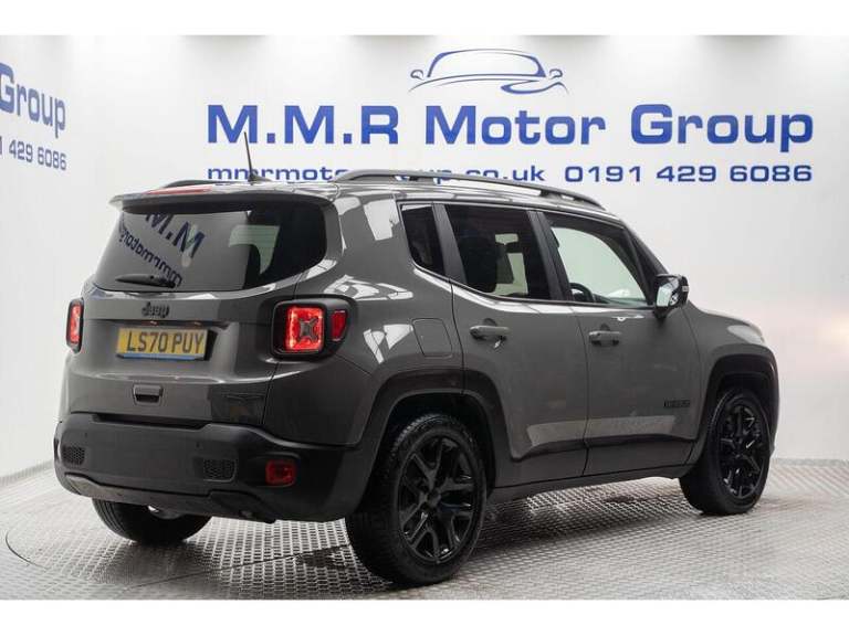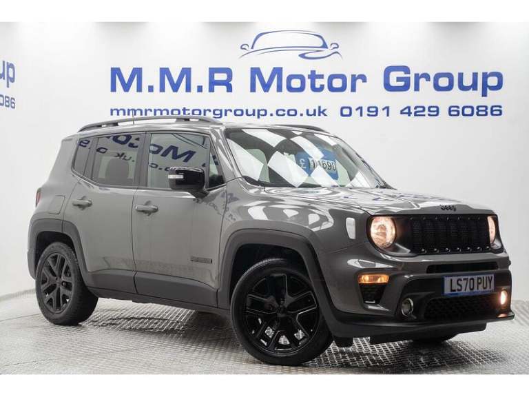 Quickspace Cloth - Black,Reversible and Height Adjustable Cargo Load Floor,Function Pack 2, 12V Auxiliary Power Outlet Centre Console, 18in Alloy Wheels - Black Gloss, 2nd Row Fully Functional USB Port, 6-Way Manual Driver Seat - 4-Way Manual Passenger Seat, ABS - Anti-Lock Brakes, Alarm - Thatcham Category 1, Apple CarPlay and Android Auto, Aspherical Door Mirrors, Battery Run Down Protection, Body-Colour Steel Roof, Cruise Control, DAB - Digital Audio Broadcasting, Dark Tinted Privacy Glass, Deadlocks, Door Courtesy Lamps, Dual Note Electric Horns, Dual Zone Climate Control, Electric Park Brake, Electric Power Steering, Electronic Stability Control - ESC - and Hill Start Assist, ERM - Electronic Roll Mitigation, External Rearview Mirrors with Electrical Drive and Defrost, Fix and Go Puncture Repair Kit, Fog Light Surround - Chrome, Forward Collision Warning Plus with Mitigation, Front - Next Generation - Front Side and Side Curtain -Front and Rear -Airbags, Front Fog Lights, Front Seat Belt - Adjustable, Front Tow Eye, Gear Knob - Satin Chrome, Gloss Black Grille Surround, GPS Navigation, Head Restraints - Height Adjustable 3rd Rear, High Gloss Black Bezels, High Gloss Black Steering Wheel Bezels, Instrument Cluster - 3.5in Monochrome TFT Display, Integrated Antenna, ISOFIX Child Seat Restraint System, LaneSense - Lane Departure Warning Plus, Mileometer - Odometer, Night Eagle Badge, Painted Exterior Rearview Mirror, Panic Brake Assist, Parking Sensors - Rear, Passenger Airbags Deactivation, Power Windows - Driver and Passenger Express Up and Down, Power Windows - Rear, Remote Control Central Door Locking, Rev Counter, Roof Rails - Black, Seats - Front Passenger Forward-Fold Flat Seat, Side Repeater Lamp, Soft Front Seat Armrest - Sliding with Interior Bin, Speakers x6, Speed Limiter, Steering Wheel Adjustment - Tilt-Telescopic, Steering Wheel Controls with Bluetooth, Tonal Stitching Steering Wheel, Tonneau Cover, Tow Eye Brackets, Traction Control, Trailer Sway Damping - Control, Tyre Kit Tag - B Group, Tyre Pressure Monitoring - Warning Display, Uconnect Live Services via Mobile, Vinyl Wrapped Door Armrest, VP4 Radio NAV - 8.4in Touchscreen - EU.This 2020 Jeep Renegade GSE T3 Night Eagle is a great choice for those seeking a stylish and practical compact SUV. Finished in the distinctive Night Eagle trim, this Euro 6 compliant model boasts a responsive 1.0 litre petrol engine. It comes equipped with the Function Pack 2, which includes convenient keyless entry, and a reversible and height adjustable cargo load floor for versatile storage solutions. Stay connected and entertained with integrated Apple CarPlay and Android Auto, while the dual zone climate control ensures comfort for all occupants. Rear parking sensors provide added assistance when manoeuvring.The Renegade Night Eagle stands out with its thoughtful features, indicating a superior ownership experience compared to other vehicles in its class. Its low insurance group rating makes it an economical option for many drivers. The combination of practical features like the adjustable cargo floor and modern technology such as smartphone integration, alongside the ease of parking assistance, makes this Jeep Renegade a well rounded and appealing vehicle.Please call our experienced sales team on 0191 4296086 for any additional specification queries, an in depth appraisal/ Video call or maybe we can help fund your new car. All our vehicles are prepared to the highest standards by our expert technicians in our fully equipped preparation centre as we're an AA approved dealer. Every car must go through a strict and thorough inspection, Items that require attention, mechanically or cosmetically are addressed prior to delivery. We offer a wide range of Finance and Warranty packages as well as fantastic trade rates for allow wheel refurbs/colour changes, window tinting and much more. Vehicles are supplied with pre delivery service, 12 months MOT, 12 Months AA breakdown cover and 6 months Auto Protect warranty that can be extended up to 24 month. All vehicles are HPI clear a full report can be supplied at point of sale. Home Delivery can be arranged throughout the UK. We welcome part exchanges and can tailor finance packages to suit you.