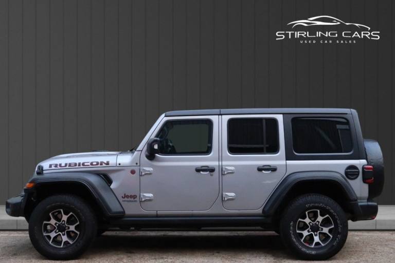 2020 (70) Jeep Wrangler 2.0 GME Rubicon finished in excellent condition and boasting the highly sought-after Rubicon specification. This is a one owner vehicle with low mileage, offering outstanding capability both on and off road while remaining comfortable and refined for everyday driving. Powered by the strong 2.0 petrol engine producing 272ps and paired with a smooth automatic gearbox and 4WD system, this Wrangler delivers impressive performance and confidence in all conditions. The Rubicon model is renowned for its rugged design and advanced off-road capability, while still providing modern comfort and technology. This example benefits from a manual convertible roof, allowing you to enjoy open-top driving when desired. Inside, the cabin is finished with leather seats, featuring heated front seats and a heated steering wheel for added comfort. Additional features include a reversing camera, privacy glass, and a well-equipped interior designed for both adventure and daily use. A superb opportunity to own a low mileage, one owner Wrangler Rubicon with excellent specification, automatic transmission, and convertible roof. A versatile and iconic SUV that is ready to drive away and enjoy. ALL CARS COME WARRANTED WITH THE OPTION TO EXTEND FOR UP TO 3 YEARS AT A LOW COST. ALL VEHICLES INCLUDE BREAKDOWN COVER FOR THE FULL TERM OF THE WARRANTY. Warranty extensions can also be paid over 10 monthly instalments for added convenience. We now also offer a tyre, alloy and smart repair package; please see the pictures or contact us for more information. This package is available for 3 years at £989 per year and covers any alloy, tyre, or smart repair damage your vehicle may incur. [Website URL removed] At Stirling Cars, we take pride in offering over 100 quality used vehicles, each carefully selected and prepared to the highest standard. Every car goes through a thorough inspection process, comes with a valid MOT, and includes a comprehensive warranty for your peace of mind. We believe in doing things right from the moment a car arrives to the moment you drive it away. It’s prepped to perfection and ready to go..Extended Warranty Available, Ceramic Paint Polish Avaliable , Alpine Sound System & Convertible, Heated Leather Seats & Steering Wheel, Rear Camera & Navigation & Media , Hardtop Headliner, Dual Top - Black, 12V Auxiliary Power Outlet - Rear, 12V Auxiliary Power Outlet Centre Console, 17in Alloy Wheels - Polished Aluminium with Black Pockets, ABS - Anti-Lock Brakes, Active Speed Limiting Device, Airbags - Drivers, Airbags - Front Side, Airbags - Passenger, Alarm - Premium, Ambient LED Interior Lighting, Apple CarPlay, Auto Dimming Rear View Mirror, Black Freedom Top 3-Piece Modular Hard Top, Cargo Compartment Floor Mat, Climate Control, Cruise Control, Daytime Running Lights - LED, Deep Tint Sunscreen Glass, Door Mirrors - Black, Door Mirrors - Power Adjustable and Heated, EARS - Emergency Accident Response System, ESC - Electronic Stability Control, Electric Windows - Front One Touch, Fender Flares - Black, Floor Mats - Front and Rear, Front Fog Lamps - Round LED, Front Grille - Body Colour with Accent Colour Grille and Headlamp Throats, Front Sway Bar - Disconnectable, Front Windscreen Wipers - Variable and Intermittent, Google Android Auto, Headlamp Off Time Delay, Headlights - Automatic On, Headlights - LED with Round Signature, Headlights - Levelling System, Heated Front Seats, Heavy Duty Electrical Pack, Illuminated Front Cupholders, Instrument Cluster - 7in TFT Colour Display, Keyless Entry, Keyless Go with Push to Start Button, LED Tail Lamps, Leather Wrapped Steering Wheel and Shift Knob, Manual 2-Way Adjustable Driver Lumbar Support, Manual 6-Way Adjustable Driver Seat, ParkSense Rear Park Assist System, ParkView Rear Back Up Camera, Parking Sensors - Front, Power Steering - Electro-Hydraulic, Premium Alpine Audio System with Subwoofer, Rear 60-40 Split Folding, Rear Fog Lamps, Rock Rails, Rubicon Hood Decal, Seats - Passenger 4-Way Adjustment, Spare Wheel Cover, Speakers x8, Steering Wheel - Mounted Audio Controls, Storage Tray, Sun Visors with Illuminated Vanity Mirrors, Tru-Lock Differentials, Tyre Pressure Monitoring - Warning Display, Uconnect 8.4in with Navigation, Uconnect Live - Europe, Vehicle Information Centre, Billet Silver