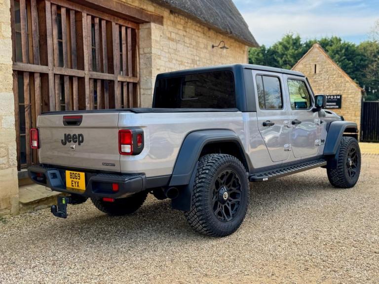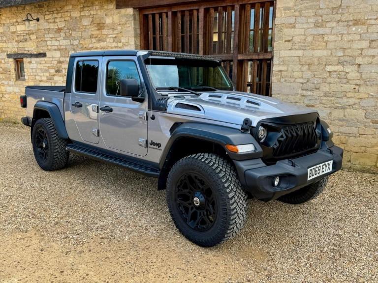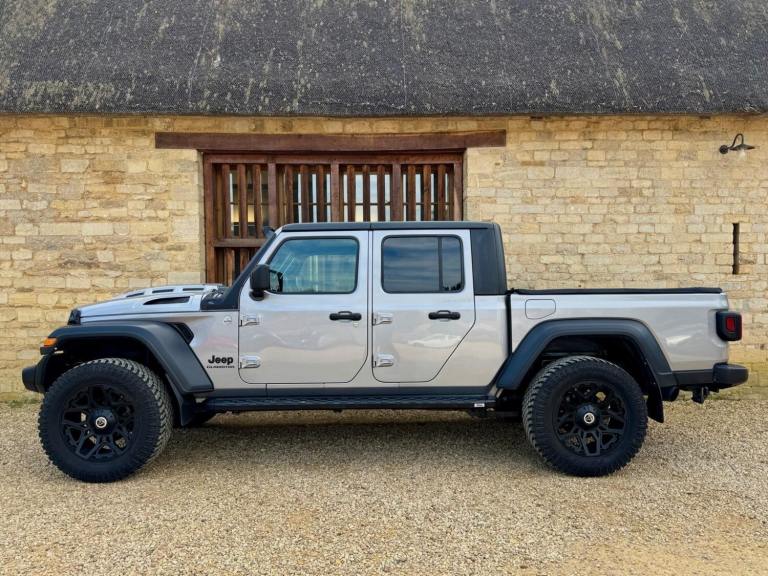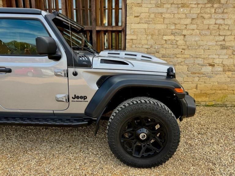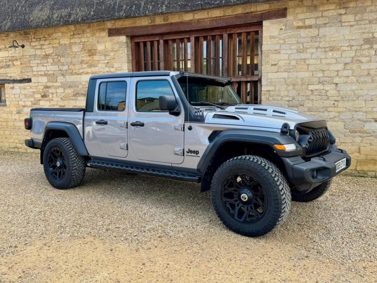 We are excited to offer this amazing one of a kind Jeep Wrangler Gladiator double cab pick up. Imported from the U S, originally manufactured in 2019 and in left hand drive form looks fabulous and ready for you to turn up at any occasion with that fun factor. Finished in grey metallic with contrasting black detailing, wheel arches and roof, full width over cab LED light bar, vented bonnet, LED lights, HD bumper and predator grille, 20 satin black multispoke alloy wheels, graduated privacy tint, 3.6 litre V6 petrol automatic, 285 BHP, optional super charger performance upgrade, climate controlled A/C, cruise control, heated seats, removable roof panels, command trac 4WD 8 speed automatic transmission, up to 3.5 tone towing and so much more. Arriving later next week, so please get in touch for further help and advice. It has recently been on location with the making of the new Amazon Prime Citadel series, so watch this space as it will be out later this year. Due in later next week.