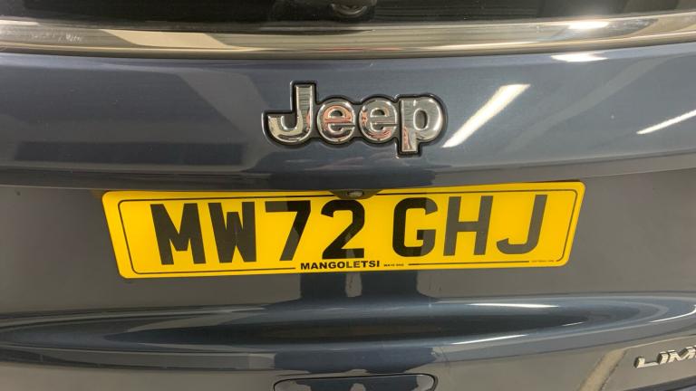 12V Auxiliary Power Outlet - Second RowAuxiliary 12v Power Outlet In Cargo AreaBluetooth Streaming AudioDAB - Digital Audio BroadcastingGlobal Telematics Box Module - TBMInstrument Cluster - 10.25in TFT Colour DisplayMedia HubRemovable Short Mast AntennaSpeakers x6TBM Connectivity EMEAUConnect 5 R1 Radio - High 10.1in DisplayUSB A Type - Second RowUSB Host Flip160MPH Primary SpeedometerCruise Control - AdaptiveDrowsy Driver Detection SystemDual Tyre PressureForward Collision Warning Plus MitigationFront Parking SensorsOutside Temperature DisplayParkSense Rear Park Assist SystemParkView Rear Back Up CameraTachometerTraffic Sign RecognitionTyre Pressure Monitoring DisplayVehicle Information Centre18in Alloy Wheels - DiamondAccent - Body Colour BumpersAspherical Driver Exterior MirrorBlack Mic Grille with Chrome RingsBlack Side Roof RailsBody Coloured Door HandlesBody-Colour Steel RoofChrome Window SurroundsCompass BadgeDeep Tint Privacy GlassDoor Mirrors - Gloss BlackDoor Mirrors - Power FoldingFront License Plate BracketJeep BadgeLimited BadgeLower Bodyside Cladding - BlackPower Windows - Driver and Passenger Express Up and DownRear FasciaTyre Kit Tag - B GroupWindshield Wiper De-IcerHeadlamp Off Time DelayHeadlamps - AutomaticHeadlights - Levelling SystemHeadlights - SmartbeamLED Front Fog LampsLED Reflector Headlamps - HighLED Tail LampsAir Vents - Front and RearAll-Weather Floor Mats with Jeep LogoArmrest - Rear with CupholdersAuto Dimming Rear View MirrorBattery Run Down ProtectionCapless Fuel FillerCargo Compartment CarpetCargo Compartment CoverCargo Compartment LampCargo Compartment OrganiserCargo Load FloorCargo Tie Down LoopsCentre Console with Sliding ArmrestCoat HooksDash InsulationDriver Assist HandlesDrivers Manual Height Adjustable SeatDual Note Electric HornsDual Zone Climate ControlFront Map Pocket LED LightFull Length Floor ConsoleGear Knob - Satin ChromeGlovebox LightGlovebox with Damper DoorHead Restraints - Rear x3Heated Front SeatsHeated Rear WindowHeated Steering WheelIlluminated EntryInstrument PanelInterior Door Handle LED LampInternal Rear Grab HandlesJeep Call Assistance LabelManual 6-Way Adjustable Driver SeatMap-Reading LampsMedia Centre Electronics StorageOverhead ConsoleOverhead Dome LED LightsPassenger Assist HandlesPower 2-Way Driver Lumbar AdjustPower Liftgate ReleasePower PackRain Sensitive Windscreen WipersRear 60-40 Split