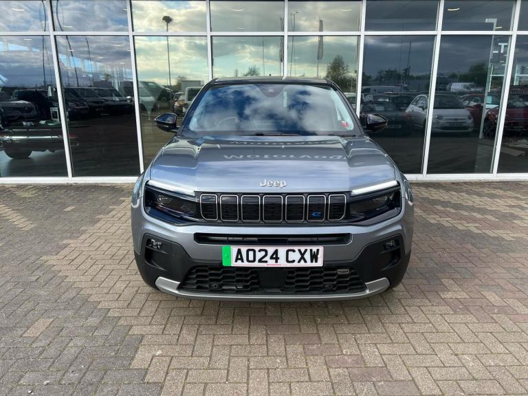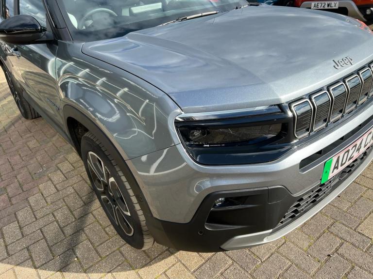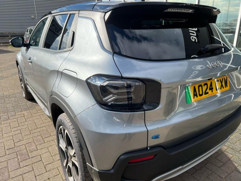 Jeep Avenger 115kW Summit 54kWh 5dr Auto..(AEB) Autonomous Emergency Braking with pedestrian and cyclist recognition, 10.25'' Full TFT reconfigurable colour cluster, Adaptive cruise control, All-Terrain Mode Selector, Apple Carplay/Android Auto with wireless mirroring, BSRF connectivity box, Connectivity services, Drowsy driver detection system, eCall emergency call system, EV Drive Mode Selector, Hands free power liftgate, Intelligent speed assist, Keyless Start/Engine On Button, Lane Centering, Lane departure warning, Lane keep assist, Odometer, Power assist steering, Quick Guide English, Rear view camera with dynamic grid lines, Surround view camera system, Traffic jam assist, Traffic sign recognition, Urban blind spot monitor, Warranty Booklet - UK, Wireless charging, 11KW onboard charger, Battery default, Ev/Phev Electrically Driven Temperature Control, Ev/Phev Fast charging, Ev/Phev Quick charging, EV/Phev Second Life Ready Battery, Ev/Phev Smart Charging, Ev/Phev Smart Charging Port, EV/Phev Vehicle To Grid/Home (Package Protected), Mode 3 cable, Audio system with 6 speakers, Radio controls on steering wheel, Rear USB port with type-C charging, 7 Slots grille in gloss black, All power windows express Up/Down, Automatic headlights, Automatic high/low beam, Body colour exterior door handles, Dusk/Dawn light sensor, Foldable/Heated/Power door mirrors with Auto folding function and puddle light, Frameless auto dimming interior rear view mirror, Headlight levelling control, Heated windshield on wipers parking area, LED 3rd brake light, LED daytime running lights, LED Fog lamps with cornering function, LED projector headlamps, LED rear lights, Mirror covers painted gloss black, Privacy glass, Rain sensor, Rear side wing doors, Rear wiper, Welcome/leaving lighting, 12V power outlet, 3 rear headrests, 3 seat bench in 2nd row, Automatic A/C (1 Zone), Cargo Flex Kit - Flat floor on trunk area, height adjustable cargo floor, double face carpet/scratch resistant and washable, Central console dividers x2, Driver and front passenger sunvisor with vanity mirror, Foldable second row seats 40/60 - Fix and Fold, Front and rear velour floor mats, Front central armrest with storage, Front head restraints, Front passenger grab handle, Front passenger isofix child seat attachment, Front seat backrest pocket, Heat pump, Height/depth adjustable steering wheel, I am Jeep label, Predisposal for tunnel pad cover, Single front passenger seat, Synthetic leather steering wheel,