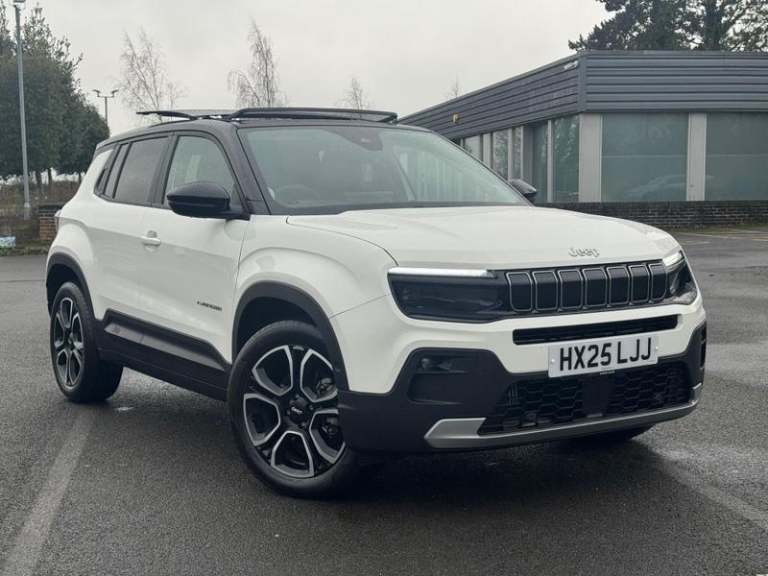 10.25in UConnect Infotainment System6 Speaker Audio SystemApple CarPlay and Android Auto with Wireless MirroringBSRF Connectivity Box - HardwareConnectivity Services - EuropeEcall - Emergency Response SystemFront 12V Power Outlet and 2 USB Ports - Type A and Type CInstrument Cluster - 10.25in TFT Colour DisplayUSB Charging Type C - 2nd RowVehicle to Grid-HomeWireless ChargingAdaptive Cruise Control with Lane Centering and Traffic Jam AssistAll-Terrain Mode SelectorDrowsy Driver Detection SystemEV Drive Mode Selector and Grip ControlLane Departure WarningMileometer - OdometerParking Sensors - Front - Rear - SideQuick Guide - EnglishRear View Camera with Dynamic GridlinesSurround View Camera SystemTraffic Sign RecognitionTyre Pressure Monitoring SystemUrban Blind Spot MonitorWarranty Booklet - UK18in Alloy Wheels - Diamond Cut - Matt BlackAll Power Windows - Express Up and DownDoor Mirrors - Power Folding - Heated with Auto Folding Function and Puddle LightExterior Door Handles - Body ColourFix and Go Puncture Repair KitGrille - 7Slots - Gloss BlackLabel - I Am JeepMirror Covers - Painted Gloss BlackPrivacy GlassDaytime Running Lights - LEDHeadlamp Levelling SystemHeadlights - Automatic High-Low BeamLED Fog Lamps with Cornering FunctionLED Projector HeadlampsLED Rear LightsAutomatic Air Conditioning - 1 ZoneCargo Flex KitCentral Console Dividers - x2Dashboard Interior Rubber Mats and Pad CoverDriver and Passenger Sun Visors with MirrorDriver Seat - Manual 6-Way AdjustmentsElectronic HornEV Electrically Driven Temperature ControlFoldable 2nd Row Seats - 40-60 Fix and FoldFrameless Auto Dimming MirrorFront and Rear Dome LampFront Central Armrest with StorageFront Passenger Grab HandleFront Passenger Seat - Manual 4-Way AdjustmentsFront Seat Backrest Pocket - Driver and PassengerHandsfree Power LiftgateHeat PumpKeyless Start - Engine On ButtonKit Fix and Go Predisposition - Housing OnlyPredisposal For Tunnel Pad Cover - Dedicated PRND BezelRain SensorRear HeadrestSteering Wheel - Synthetic LeatherSteering Wheel Adjustment - Depth and HeightSteering Wheel Radio ControlsTrunk LampWelcome-Leaving LightingWinter Pack11kW On Board ChargerEV Fast ChargingEV Second Life Ready BatteryEV Smart ChargingISA - Intelligent Speed AssistMode 3 Charging Cable - MonophaseMode 3 Charging Cable - ThreephasePower Steering6 AirbagsABS - Anti-Lock BrakesAntitheft Volumetric AlarmElectric Parking Brake