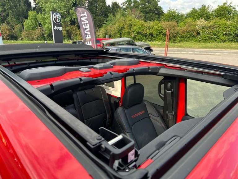 Telematics Box Module - TBM, 12V Auxiliary Power Outlet - Rear, 12V Auxiliary Power Outlet Centre Console, Alpine Premium Audio System, Audio Jack for Mobile Devices, Connected Services - Europe, E-Call, Global Positioning System, Jeep Mapcare, Media Hub, Remote USB Port, USB A Type - Second Row, Uconnect 5 Nav with 12.3in Display, Adaptive Cruise Control with Stop and Go, Blind Spot Detection with Rear Cross Path, Drowsy Driver Detection System, Forward Collision Warning Plus Mitigation, Lane Departure Warning, Off-Road Plus Mode, ParkSense Front Park Assist System, ParkSense Rear Park Assist System, ParkView Rear Back Up Camera, Rear Seat Reminder Alert, Selec-Speed Control, Selectable Tyre Fill Alert System - STFA, Tyre Pressure Monitoring System, Vehicle Information Centre, 17in Alloy Wheels - Machined - Painted Black, Black 3-Piece Hard Top, Black Door Handles, Black Fuel Filler Door, Bumper - Front Black, Bumper - Rear Black, Deep Tint Sunscreen Glass, Door Mirrors - Black, Door Mirrors - Power Adjustable and Heated, Electric Windows - Front One Touch, Exhaust System Module, Exhaust System Module Ii, Fender Flares - Molded-In-Colour, Front Grille - Body Colour with Accent Colour Grille and Headlamp Throats, Front Sway Bar - Electronically Disconnectable, Front Windscreen Wipers - Variable and Intermittent, Gorilla Glass, Lt255/75R17C Tyres, Rear Tow Hooks, Rubicon Hood Decal, Side Repeater Lamp, Side Steps - Mopar Black Tubular, Spare Wheel - Full Size, Spare Wheel Cover