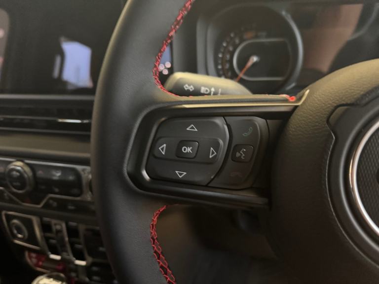 This is a 2024 Jeep Wrangler GME Rubicon, a four-wheel-drive car powered by a 2.0-litre petrol engine and with only one previous owner. It's in great condition, having covered just 15 miles and boasting a full service history. This particular model comes with some appealing features, including all-weather floor mats and a Sky One-Touch Power Top for open-air driving at the push of a button.With 548 litres of boot space, this Wrangler offers considerable practicality, making it more useful than similar vehicles. Furthermore, acceleration from 0-62mph in just 7.6 seconds means that this car delivers responsive performance. It also meets Euro 6 emission standards and has a towing capacity of 2495kg..ONE TOUCH ROOF!!.Active speed limiting device, Adaptive cruise control with Stop and Go, Apple car play/Android Auto, Audio Jack Input For Mobile Devices, Blind spot detection with rear cross path, Connected services (e-call), Drowsy driver detection, Emergency response assistance system, Exterior temperature gauge, Global positioning system(GPS), Instrument cluster with 7'' colour TFT Display, Integrated Offroad camera, Jeep mapcare, Lane departure warning, Off road plus mode, Parksense front and rear park assist system, Power Steering, Select speed control, Trip computer, Vehicle information centre, 4.10 Rear axle ratio, 700 Amp Maintenance Free Battery, Dana M210 Heavy Duty Tube Front Axle, E-Locker rear axle, Electronic front sway bar disconnect, Electronic roll mitigation, Gasoline particulate filter, Heavy duty rock slider with step assist, Performance suspension, Rock-Trac Hd full time 4Wd system, Alpine premium audio system with subwoofer, Global telematics box module (TBM), Media Hub (SD, USB, Aux), Remote USB port, Steering wheel mounted audio controls, Uconnect 5 Nav with 12.3'' Display, USB port A in second row, Auto dimming rear view mirror, Auto high beam, Auto high beam headlamp control, Automatic headlamp levelling, Automatic headlights, Black 3-Piece Hard Top, Black door handles, Black door mirrors, Black fuel filler door, Black hood decal, Centre high mounted stop light, Deep tint sunscreen glass, Exhaust system module, Exhaust system module Ii, Gorilla Glass, Headlamp off time delay, Heated rear window, Injection molded black front and rear bumpers, LED daytime running lights, LED front fog lights, LED Lowbeam, Halogen highbeam headlights, LED tail lamp, Molded-In-Colour Fender Flares (2-Pc), Power adjustable heated door mirrors, Power front