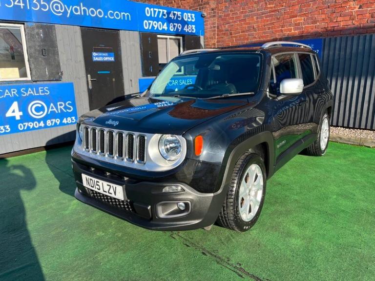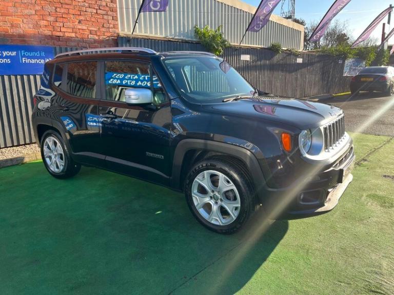 LOVELY LOW MILEAGE JEEP RENEGADE 1.6 MULTIJET DIESEL LIMITED 5 DOOR, FINISHED IN BLACK WITH FULL BLACK LEATHER INTERIOR, ALLOY WHEELS, HEATED SEATS, SATELLITE NAVIGATION, DUAL ZONE AUTO CLIMATE CONTROL, BLUETOOTH, MEDIA CONNECTION, BLUETOOTH, CRUISE CONTROL. PAS, ABS, TRACTION CONTROL. ELECTRIC WINDOWS, ELECTRIC DOOR MIRRORS, REMOTE CENTRAL LOCKING, ONLY 56000 MILES WITH SERVICE HISTORY, SUPPLIED WITH 2 KEYS AND SERVICED WITH 12 MONTHS MOT PRIOR TO DELIVERY. BEEN REFUSED CREDIT PERHAPS WE CAN HELP.If you have had problems in the past obtaining car finance please give us a call as we now have companies on board who can help.We offer flexible finance packages at very competitive rates to suit most budgets.We are situated just 5 mins from junc 28 M1 Derbyshire located in Ripley opposite Frank key builders merchants post code DE53AS.PLEASE SEE ALL OUR REVIEWS ON AUTOTRADER.ALL MAJOR DEBIT CARDS TAKEN.FREE 12 MONTHS AA BREAKDOWN COVER INCLUDED. 3 MONTHS PARTS AND LABOUR WARRANTY INCLUDED. E BAY CUSTOMERS PLEASE VISIT OUR WEBSITE FOR MORE PHOTOS