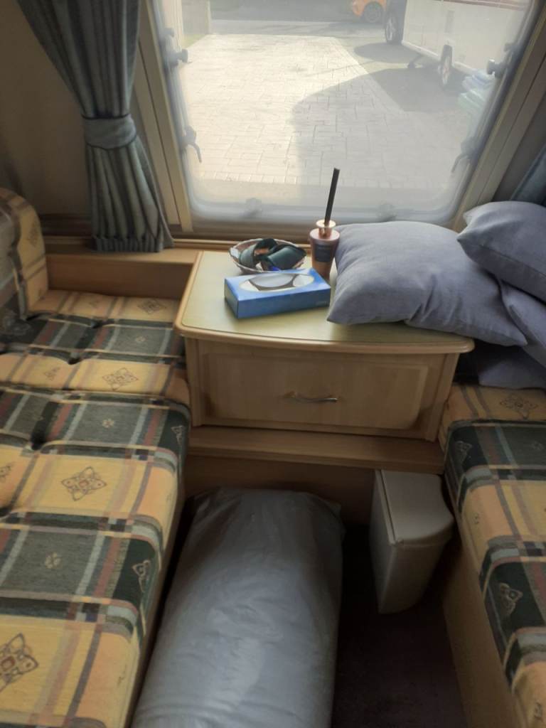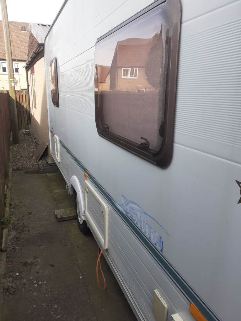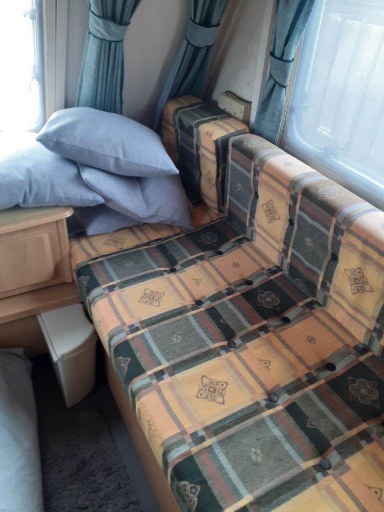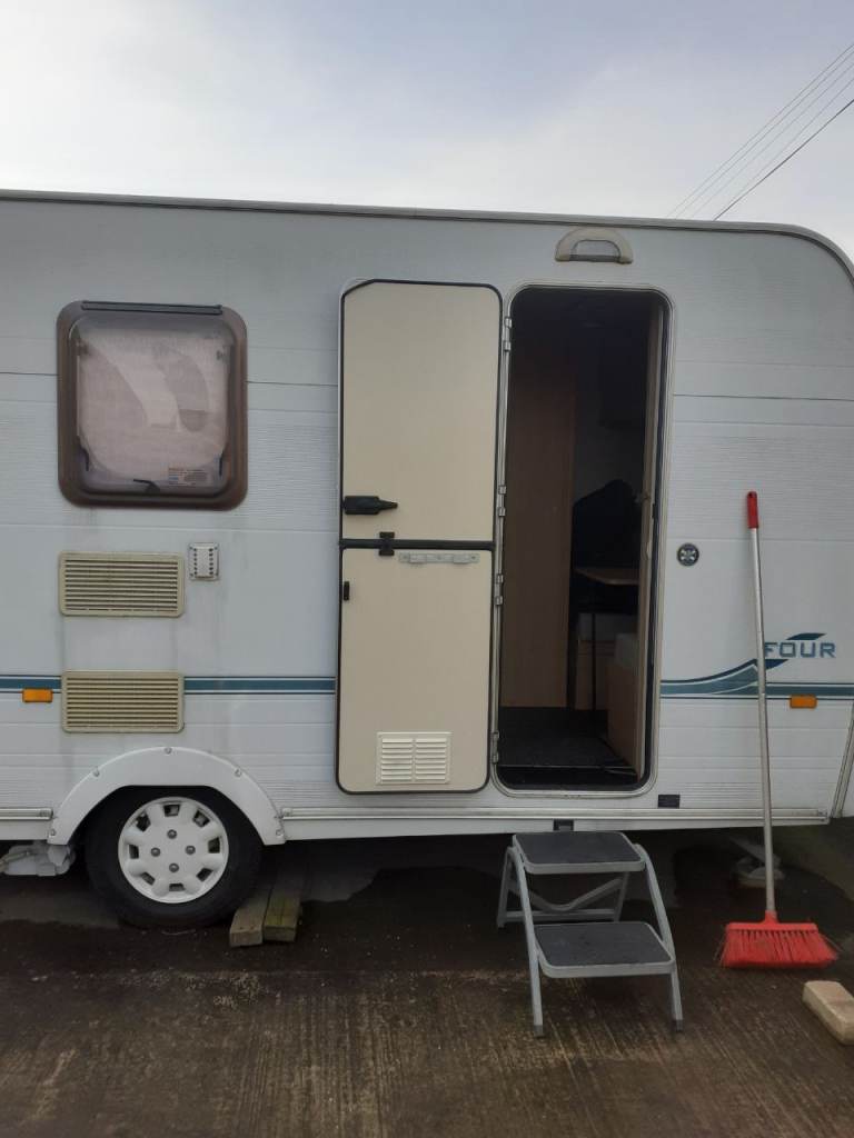 Ready for its next adventure, with general wear appropriate for its age.has blow up awning microwave cooker fridge gas bottles shower plenty of storage seats at front turn in to a double bed at back 2 single beds