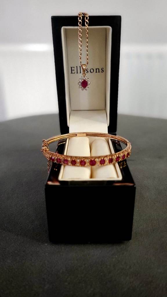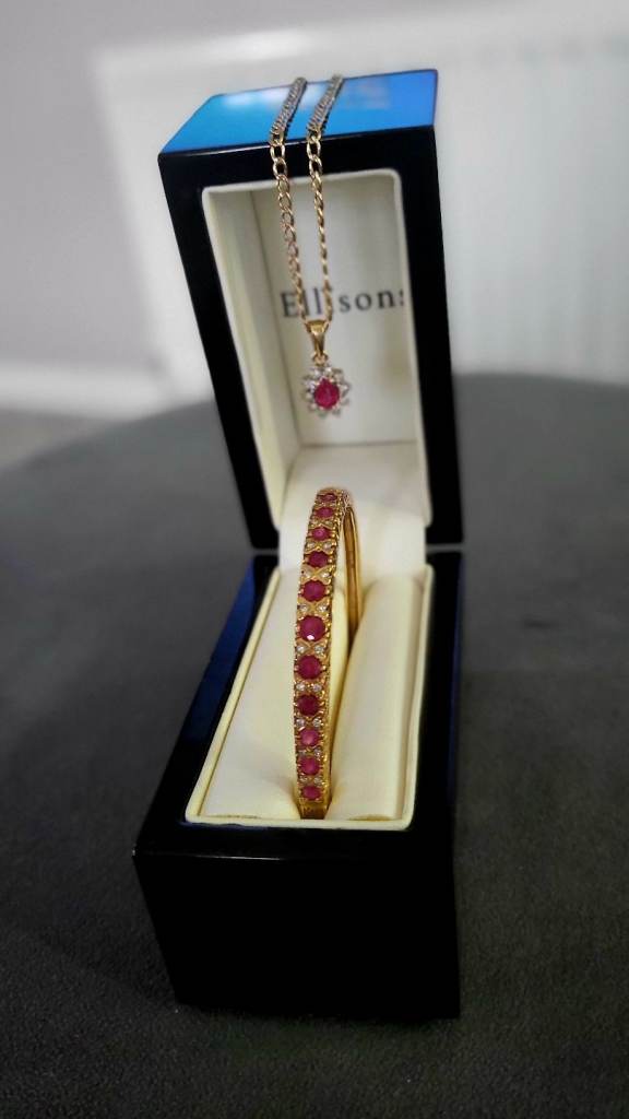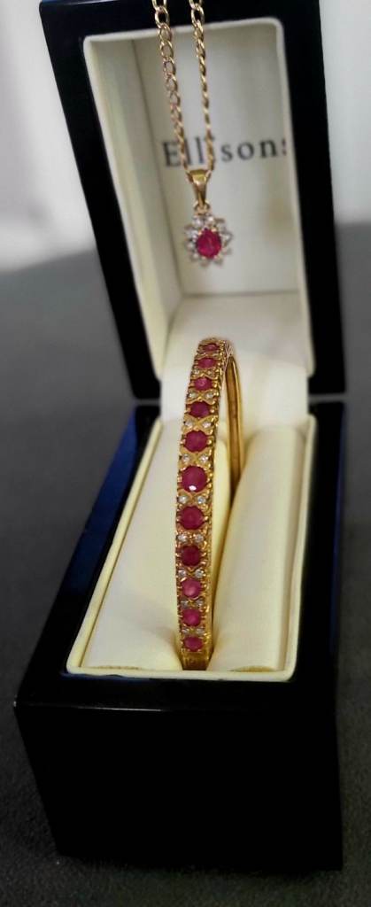18ct Yellow Gold Ruby & Diamond Pendant and Bracelet