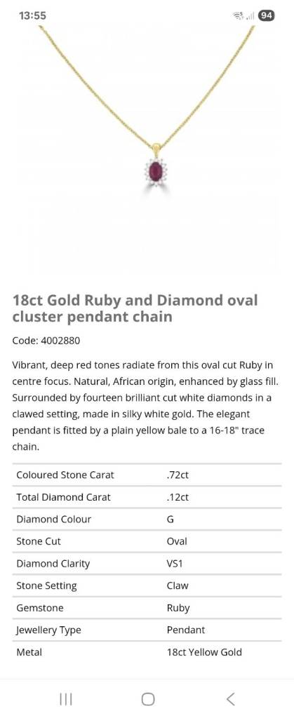 18ct Yellow Gold Ruby & Diamond Cluster Pendant & 18 Inch Chain.