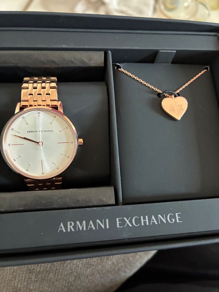 Armani watch and pendant rose gold