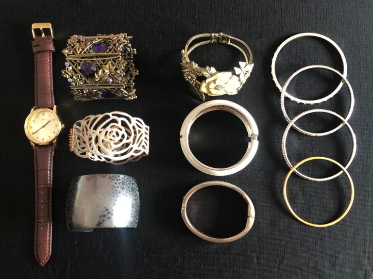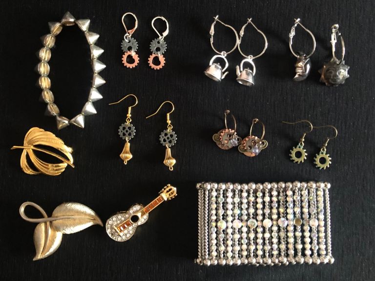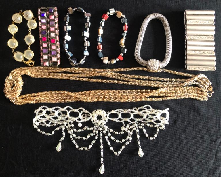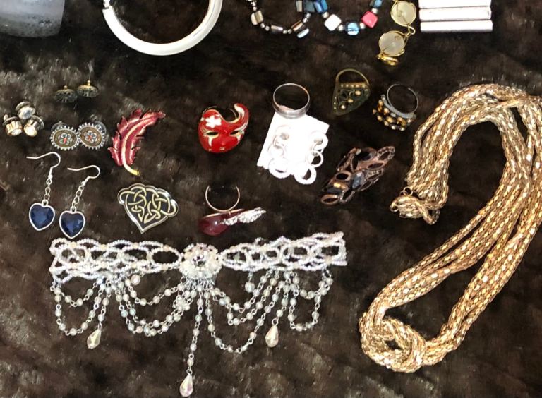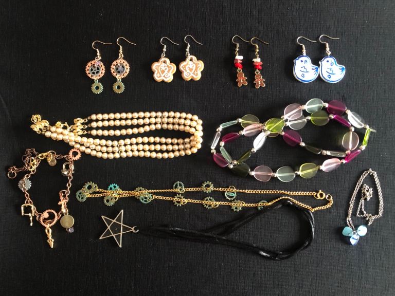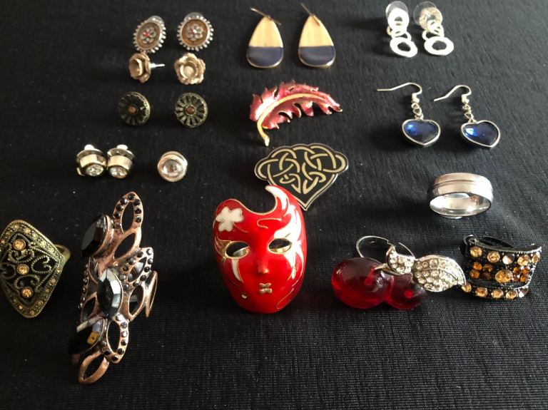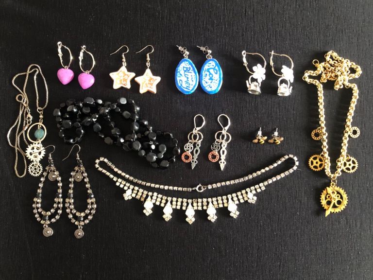 Happy to separate or sell as one big bundle - just message me. Includes, rings, necklaces, bracelets, brooches, badges, teapot ornament, broken watch with like-new strap, couple items missing one or two rhinestones, one brooch is missing pin, but all still look great! In various styles and sizes. Costume jewellery only. No real gold or silver as far as I can tell. Please collect ***Open to offers***