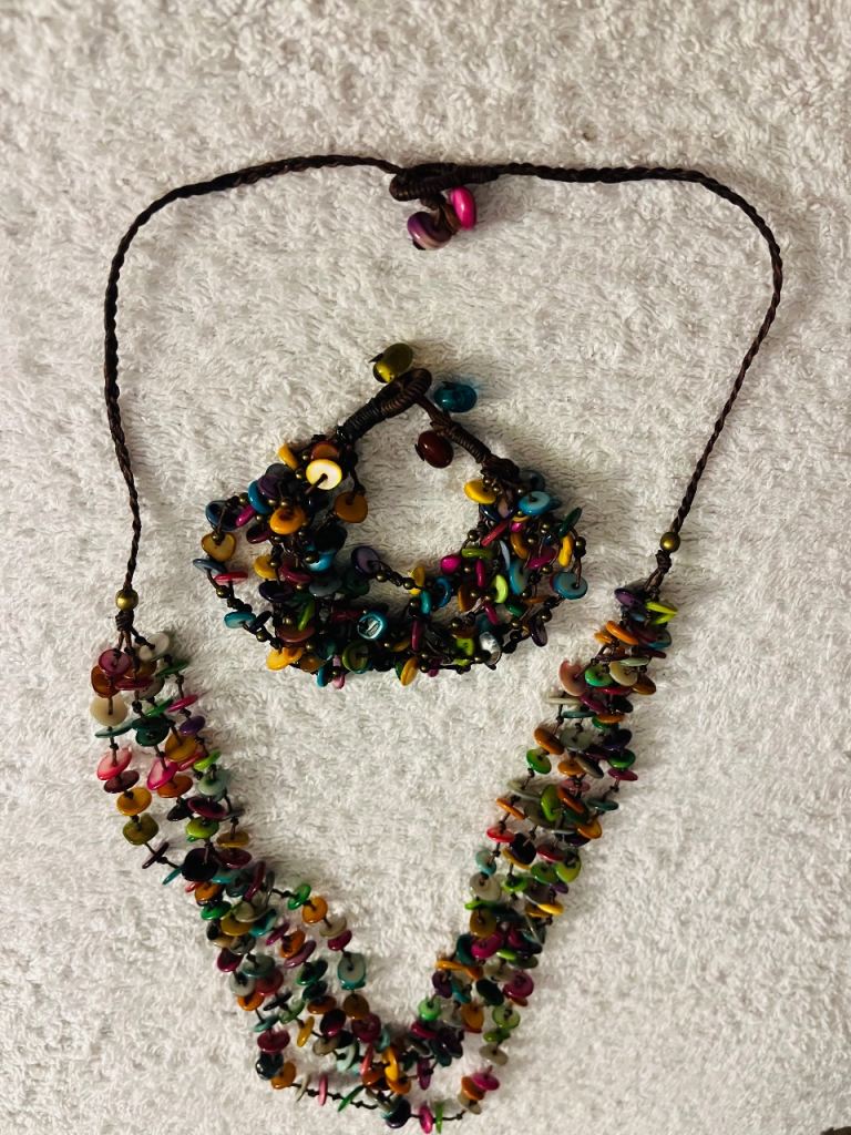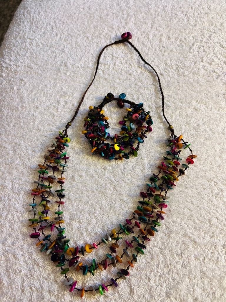 Posting for 10+ yearsNECKLACE & Bracelet. Multicoloured 1970’s UNUSUAL POLISHED STONES SET.