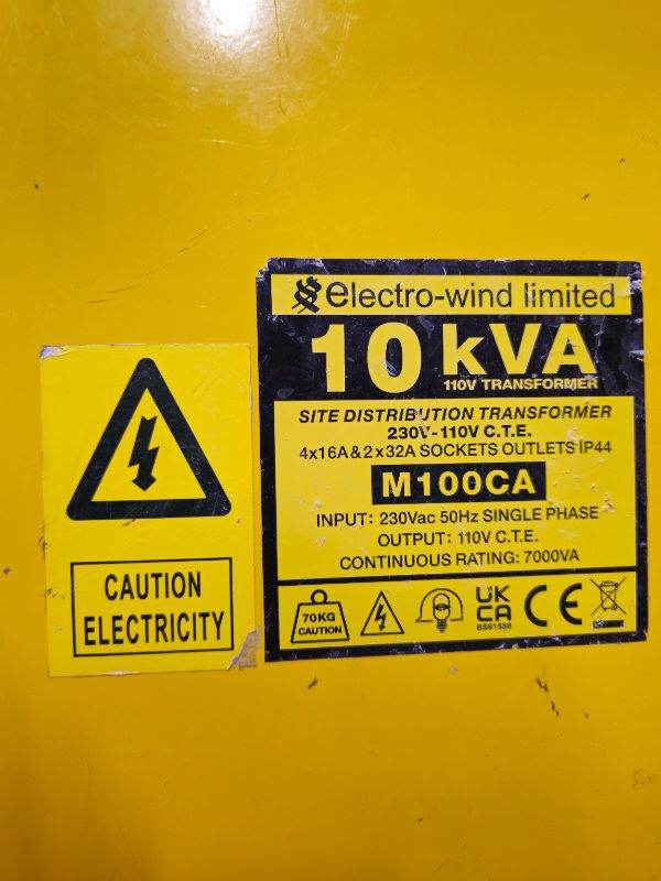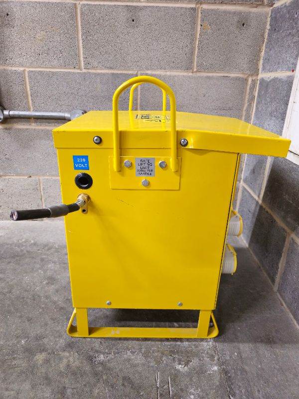 10kVA 1ph portable Site Transformer Made to comply with reduced low voltage regulations ensuring safe electrical supplies on site. Robust IP23 painted steel case complete with carry handles.