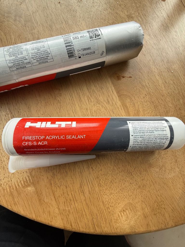 Hilti act fire sealant in mastic tubes and sausage gun also 100 plus for sale £5 a tube