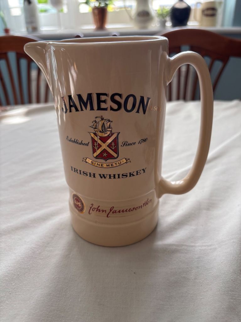 Jameson Irish whiskey water jug. 16 Cms. Tall. Very good condition. Buyer to pick up from Harston CB22 7QQ or I can post at buyer’s expense. If you all looking for whisky or other water jugs or decanter then pls check out with me as I Hv a large collection to sell.