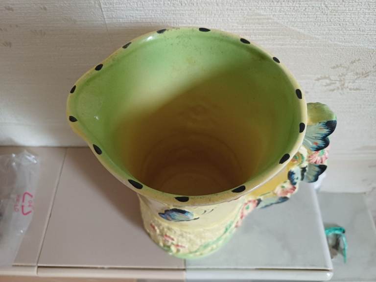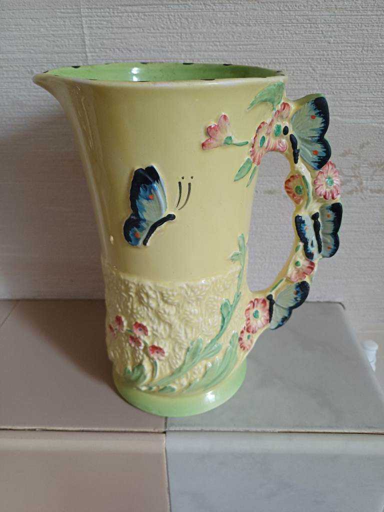 VINTAGE Very Rare BURLEIGH WARE YELLOW BUTTERFLY JUG Art Deco Majolica Pitcher Floral Jug