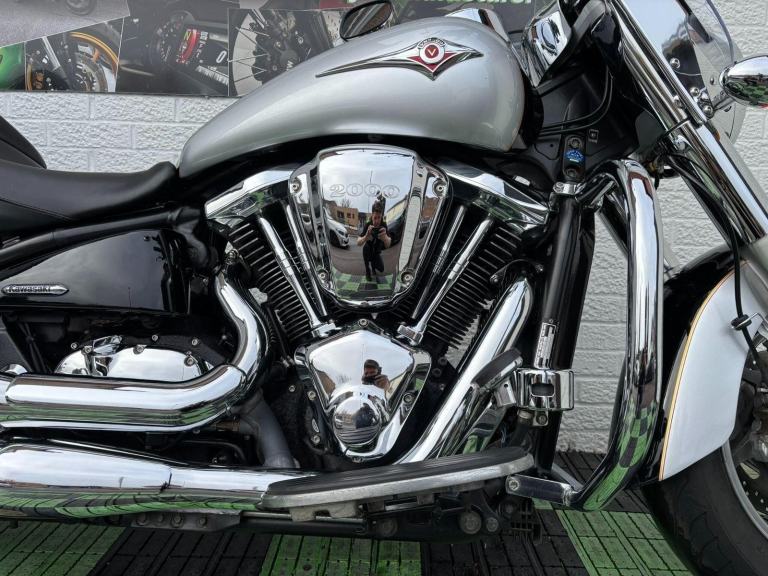 Silver, Kawasaki Vulcan VN2000 A6F, 2006 Model, Registered April 2008 (Private Reg Staying with bike) 3 Owners From New, 22495 Miles only. Great condition! Good service history! V5 present. All keys & manuals etc. HPI Clear. Extras include: Touring Screen / Engine Bars / Sissy Bar *All used bikes under go a full 60 point health check*. Stunning Metallic Silver colour scheme with some age related marks. *3 Months Warranty*......Delivery Can Be Arranged.......Part Exchange Considered......Finance Available......We are open to sensible offers so please call Pete or Tom for any further information or to simply book a viewing., 2 owners, 2 keys, Crash Bars, Double Bubble Screen, Electric start, Screen, Stainless Exhaust, Touring screen