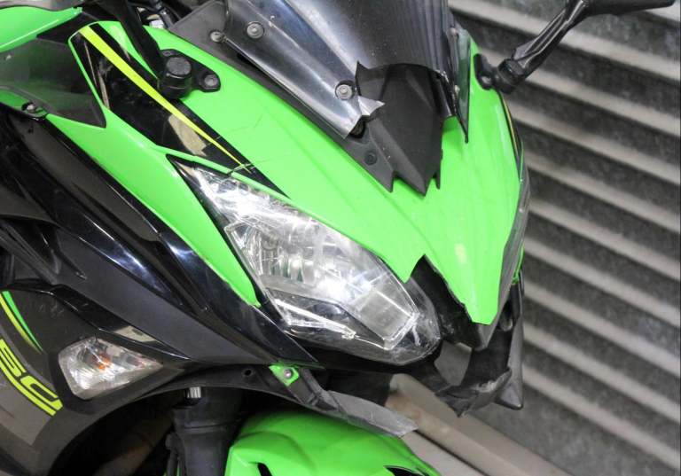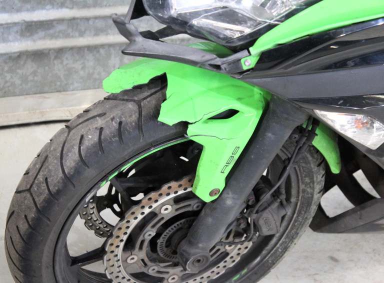 Bad points/Damage: This bike is dirty and weathered. It has had a front end crash which has damaged the panels and smashed the headlight and front mudguard. Atleast one of the brake discs is bent (can feel it pulsing when the bike is pushed) and I think the fork(s) is slightly bent. This bike will look better after a clean. Please study the pics as this description is just a guide!