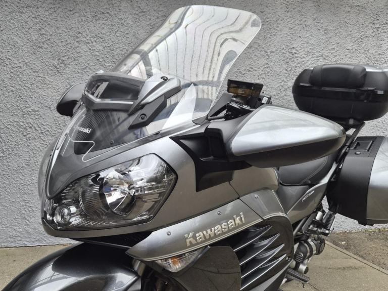 The Kawasaki GTR1400 is a powerful, high-performance sport-touring motorcycle powered by a 1,352cc inline-four engine. Known as a comfortable long-distance machine, it features shaft drive, ABS, traction control, and an electric screen.