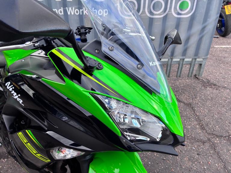 The 2019 Kawasaki Ninja 650 is a stylish and versatile middleweight sports bike, powered by a responsive 649cc parallel twin engine delivering smooth, usable power ideal for both city riding and longer journeys. With its lightweight chassis, comfortable upright riding position, and modern aggressive styling, it offers a perfect balance between performance and everyday practicality. Features include ABS braking, digital display, and sharp handling, making it a great choice for both newer riders and experienced bikers alike.