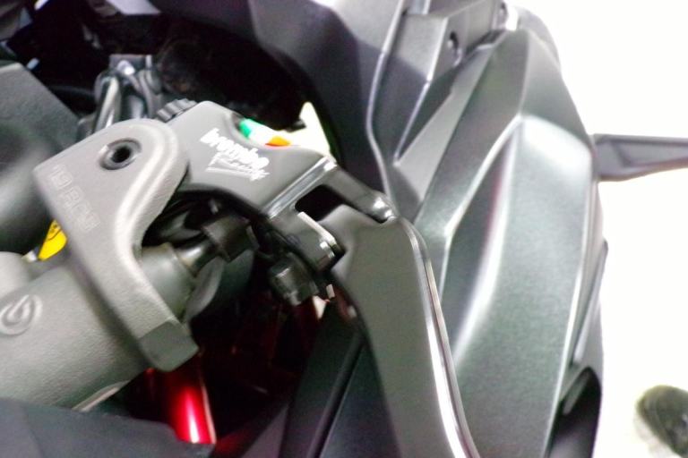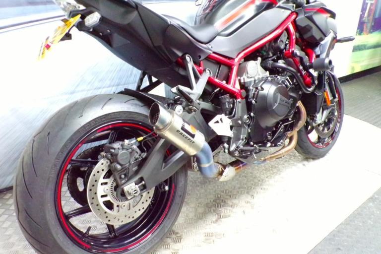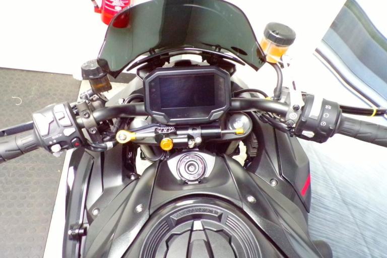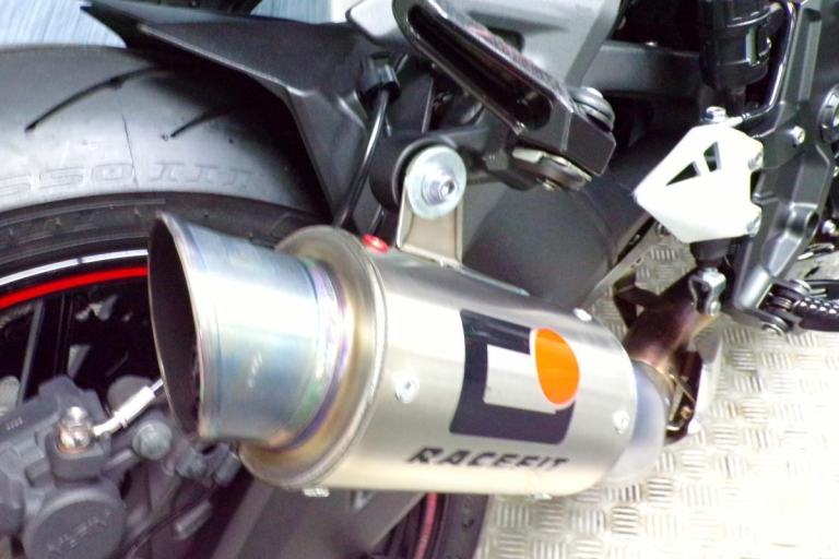 RACE FIT EXHAUST, PADDOCK STAND BOBBINS, HYPERPRO STEERING DAMPER, HEL BRAKE LINES, J-TECH TAIL TIDY, BAR END MIRRORS, CRASH PROTECTION, SMOKED FLY SCREEN, BREMBO BRAKE LEVER, TANK BAG RING, AND A TANK PAD FITTED.