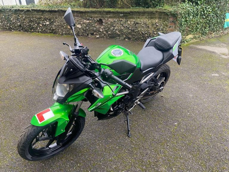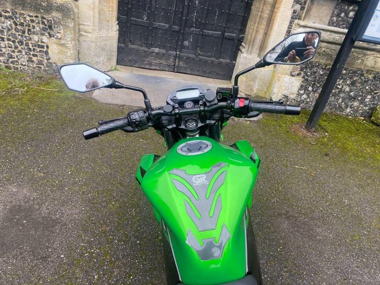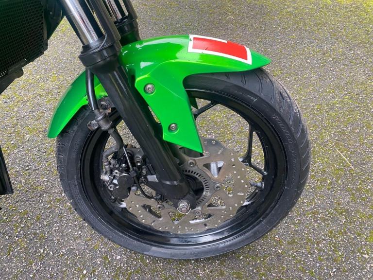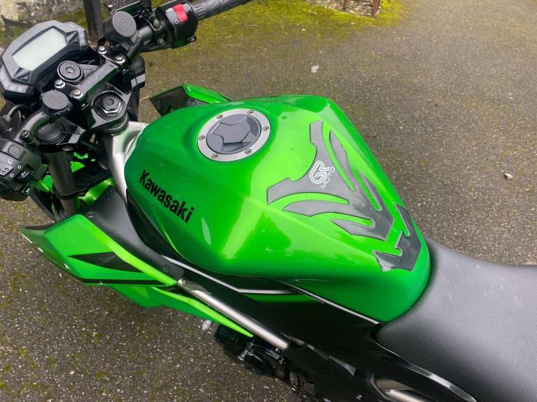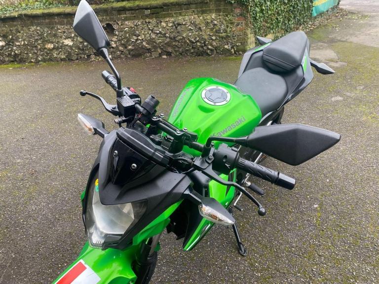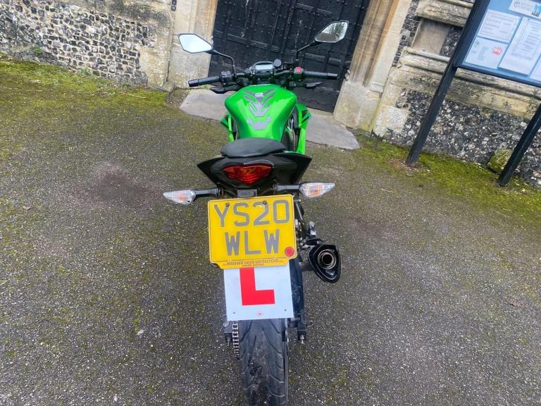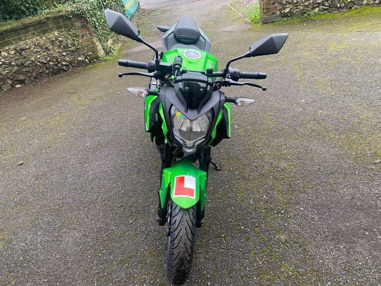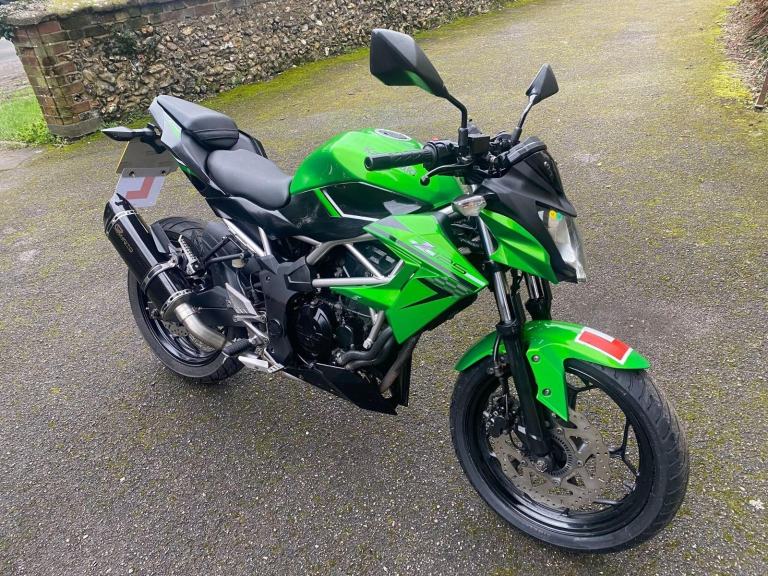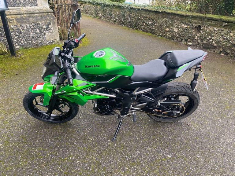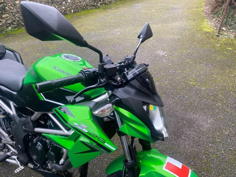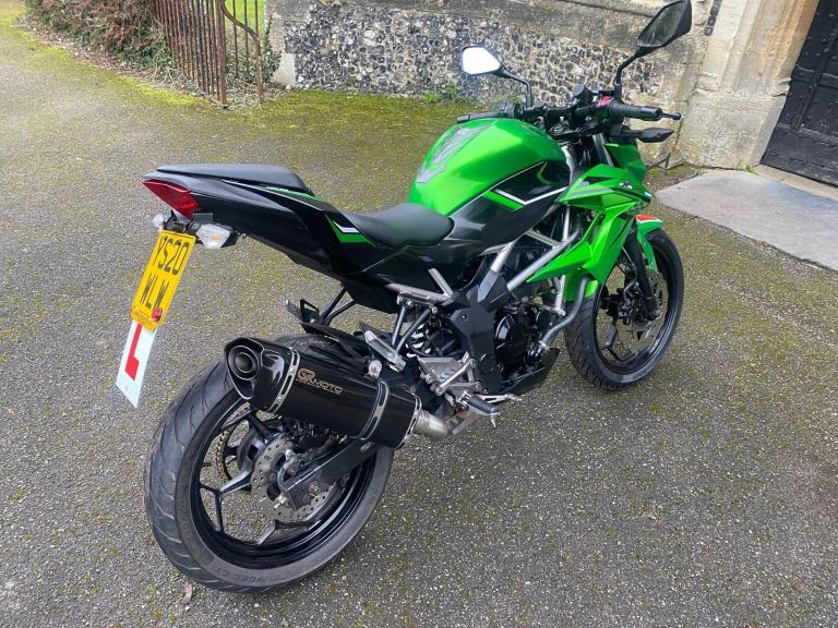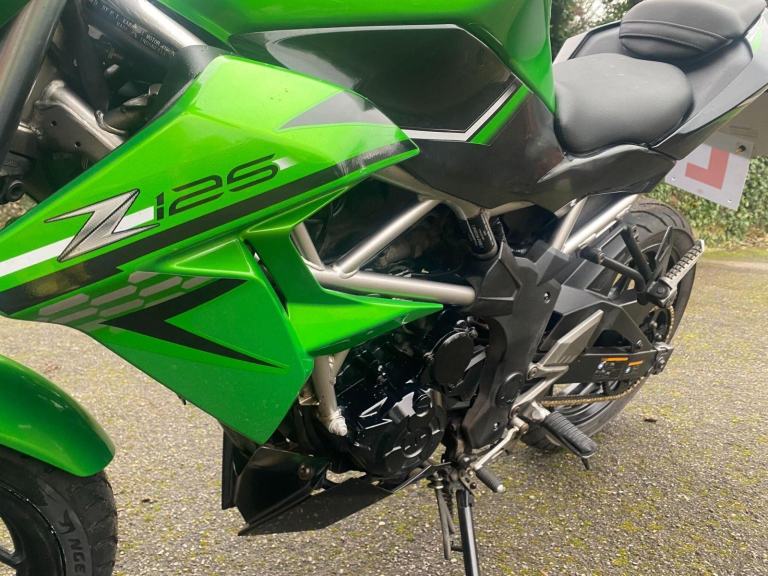Green, 2020 (20) Kawasaki Z125 (BR125) - KLF (ABS) Euro 4 in Metallic Lime Green that has covered 33671 miles.Fitted with a fab looking carbon GR Moto end-can that look the part and sounds superb.Also a GR Moto carbon tank protector, Evotech radiator guard and a USB charging [Website URL removed] with 2 keys, an owners manual and a service record book with 5 dealer services noted.An ideal choice for a naked first 125 cc which would make ideal commuter transport.New front tyre fitted that will require scrubbing in.We have just serviced the bike and fitted new front and rear brake discs and pads along, with a new gold drive chain and sprockets MOT until 10/9/2026, 4 owners, , Courier Delivery / Finance / Part-Exchange and Extended Warranty are all available