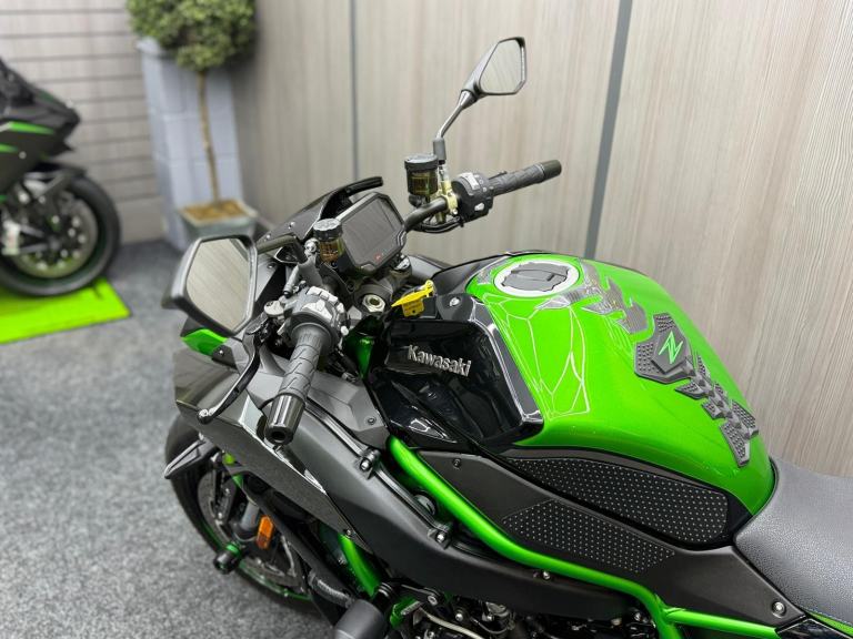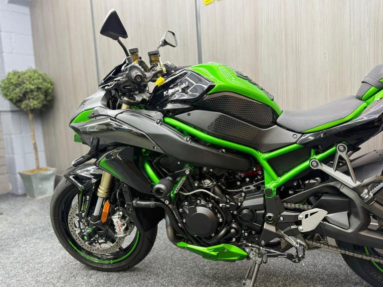2021 21 Kawasaki Ninja ZH2 1000 SE Super Charged finished in metallic black with lime green frame. This stunning hyper naked comes with ABS brakes, Crash bobbins, Brembo callipers, Electronic suspension Fork sliders, Piperwerx exhaust, Tail tidy, Front and read fender extenders, Woolwich ECU unlock with remap with printout showing 213.13hp. This bike is in stunning condition with only 2976 miles from new with the run in service being completed. Amazing looking bike that sounds incredible complete with full Kawasaki book pack including Spare Key & full service history, FOR FURTHER DETAILS PLEASE CALL BRIGHOUSE SUPERBIKES ON 01484 973625 or [Phone number removed]- ALL OF OUR VEHICLES ARE HPI & MILEAGE CHECKED - FULL WALK AROUND VIDEOS AVAILABLE ON REQUEST - LOW RATE FINANCE ARRANGED - PX WELCOME - NATIONWIDE DELIVERY, Black, £14,490