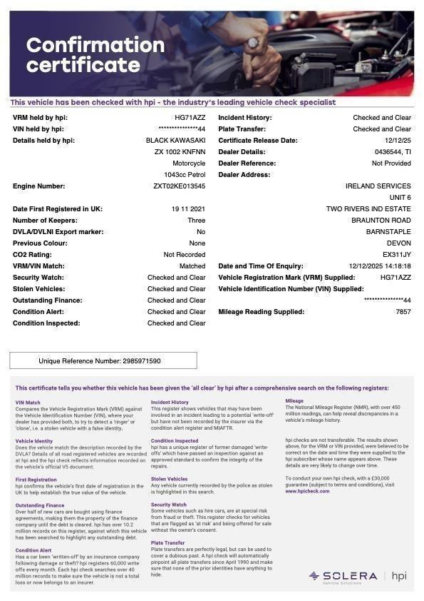 We appreciate that distance buying does have a level of apprehension so please let us guide you through the process.Part exchange welcome, please send over all your vehicle details for appraisal and if possible some images showing its condition.Delivery can be arranged separately anywhere in the UK using a Fully Insured and reliable third party delivery company.For more information about a particular motorcycle please call 01271 374243, email [Email address removed. Click Email button to contact us.] or visit [Website URL removed] thanks for taking the time to look, browse and hopefully you have enjoyed what you have seen.We look forward to dealing with you, many thanks Tom.