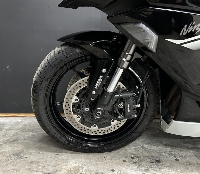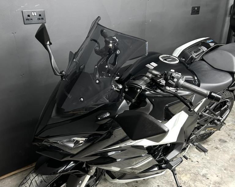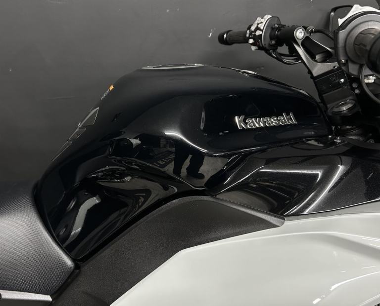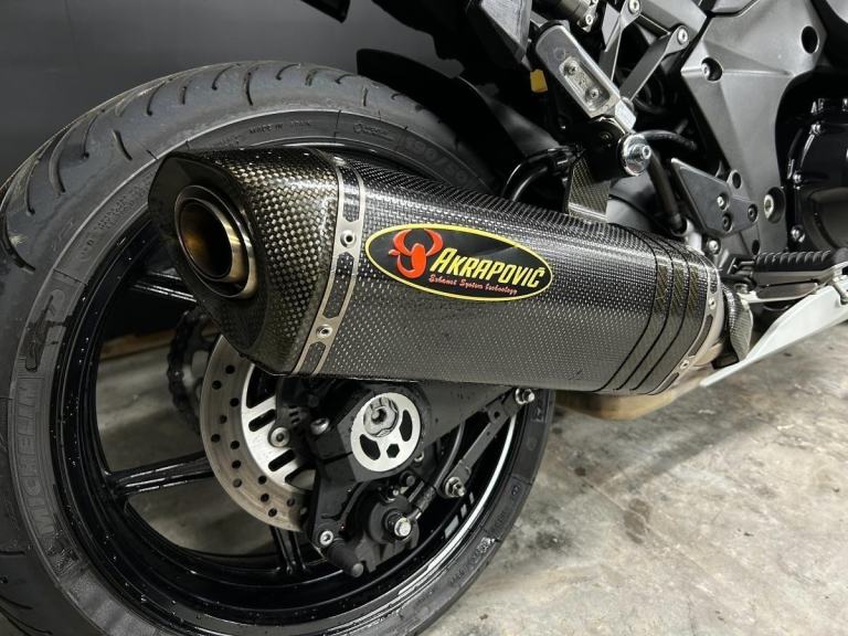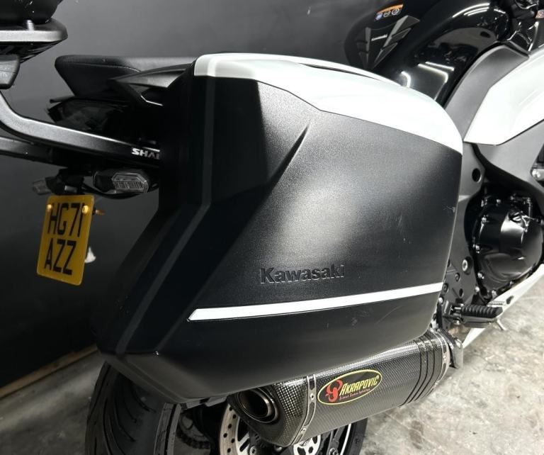It also has full luggage including a Shad top box with backrest pad, Akrapovic exhaust, Genuine Kawasaki crash bungs, handle bar risers, tank pad and Lust racing lowering kit.