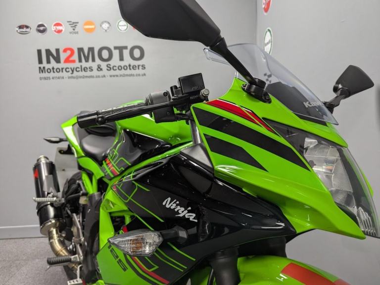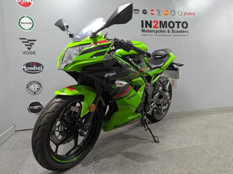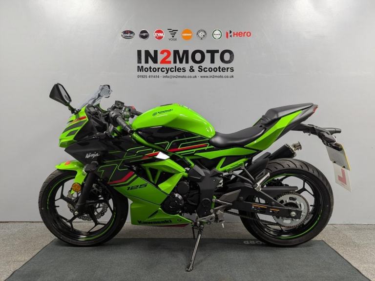 2023 (23) Kawasaki Ninja 125cc in Green with only 286 miles on the clock. A great looking sports 125 with attitude, that comes with both keys, a handbook pack, a V5 and a full service history —