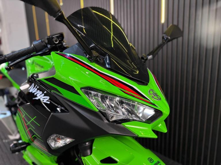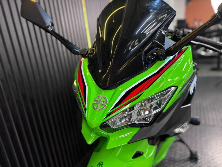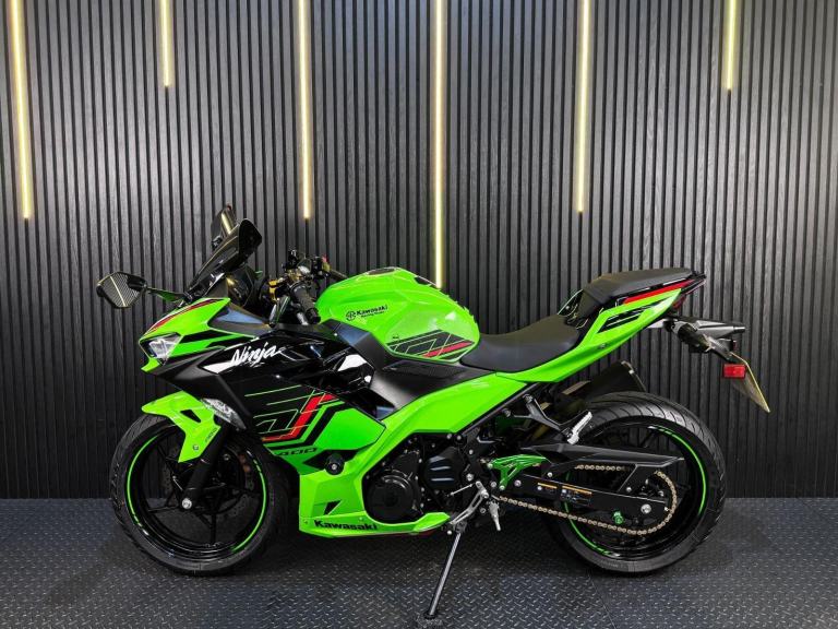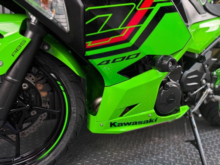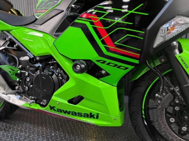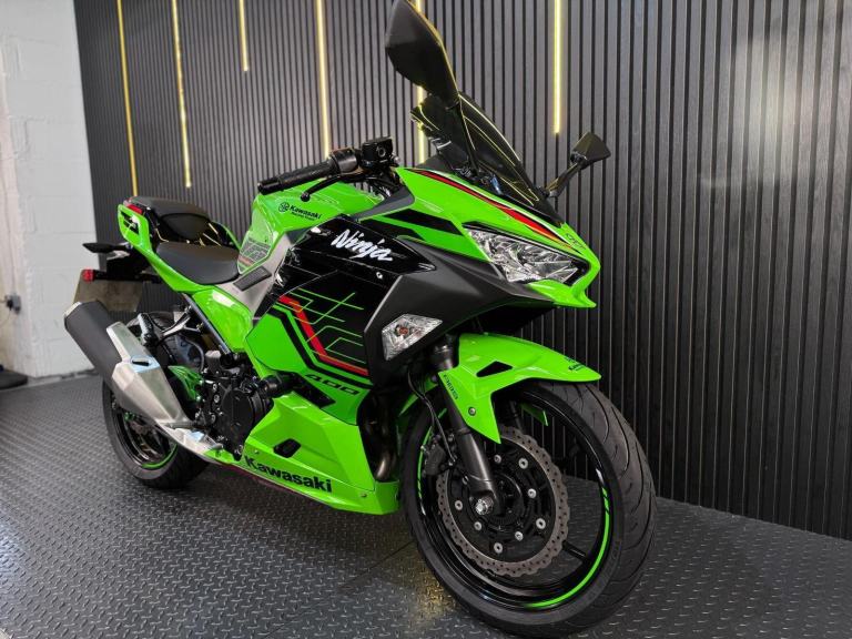 Green, 24/7 ONLINE PURCHASE AVAILABLE - This 2023 Kawasaki Ninja 400 is widely regarded as the king of the small-capacity supersport class, finished in the iconic Lime Green and Ebony Kawasaki Racing Team (KRT) colours. With 8,641 miles on the clock, this agile machine has been professionally prepared for its next owner with a comprehensive general inspection, a new oil filter, and a fresh oil change. It comes complete with two original keys. While there is a scuff mark on the right-hand side panel?please refer to the photos for a closer look?the bike remains a sharp, high-performance lightweight that is perfect for both new and experienced riders. The Ninja 400 is powered by a punchy 399cc parallel-twin engine that produces a class-leading 45hp. Because it falls under the 47hp limit, it is one of the most desirable motorcycles for A2 license holders. The engine is known for its smooth power delivery and a surprising amount of low-end torque, which makes it just as capable of navigating city traffic as it is at screaming down a backroad. It features an assist and slipper clutch, which reduces the effort needed to pull the lever and prevents rear-wheel hopping during quick downshifts. What sets the Ninja 400 apart from its competitors is its incredibly lightweight chassis. Weighing in at just 168kg (wet), it offers razor-sharp handling and is exceptionally easy to maneuver at low speeds.***Rest assured, your new bike includes a 3-month warranty (extension options available) and is guaranteed to have at least 6 months remaining on the MOT. Making your purchase simple: Explore our flexible finance plans and benefit from our affordable nationwide delivery service. Important Note on Viewing: Stock moves quickly! If you are planning to view a particular model, we kindly ask that you call us first to confirm its availability and avoid any disappointment***, 2 owners, 2 keys, ABS, Belly Pan, Electric start, Rear Hugger, Screen, Stainless Exhaust, Please visit our website to buy online, apply for finance or find out about our delivery prices.