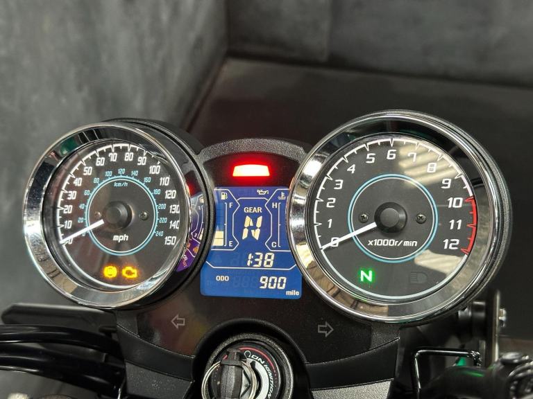 Green, This is a stunning one owner bike in lovely condition and comes with some great extras fitted. This is the RS model which offers classic old school style & charm with modern day technology. It comes with LED lights, ABS, and their parallel twin engine makes a claimed 68bhp with plenty of low down torque which is also A2 compatible using a restrictor kit. This particular bike comes with a full Black widow exhaust system, radiator guard, tail tidy, paddock stand bobbins, and some billet levers., 0 owners, , For a personal walk-round high resolution video please give us a call.